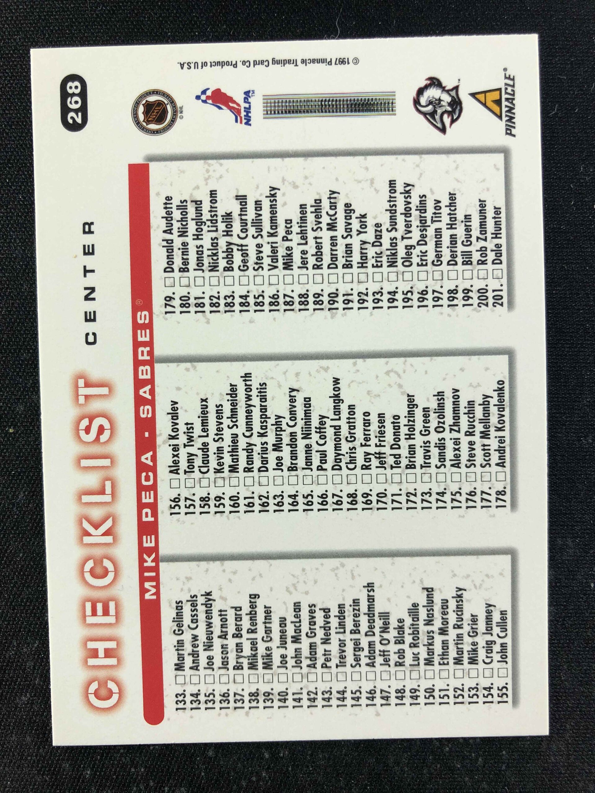Sběratelská karta 1997/1998 Pinnacle Score Base 268 Mike Peca