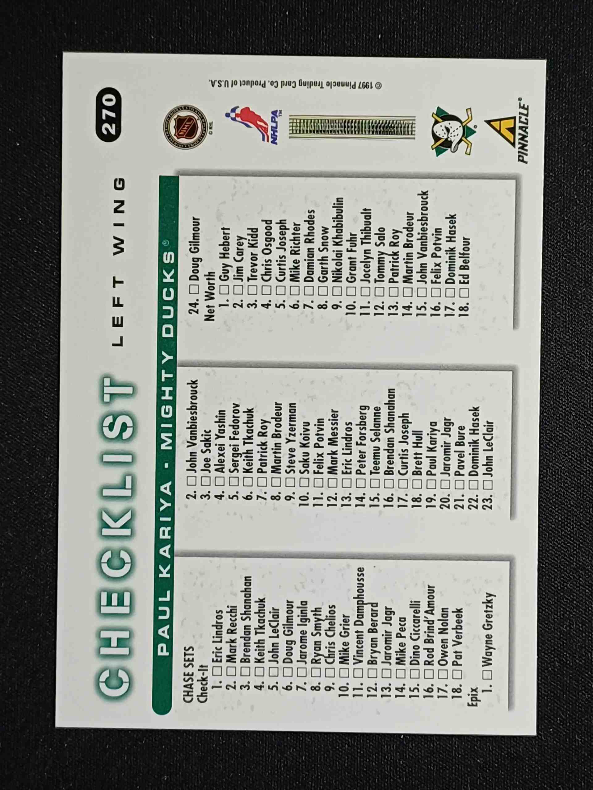 Sběratelská karta 1997/1998 Pinnacle Score Base 270 Paul Kariya