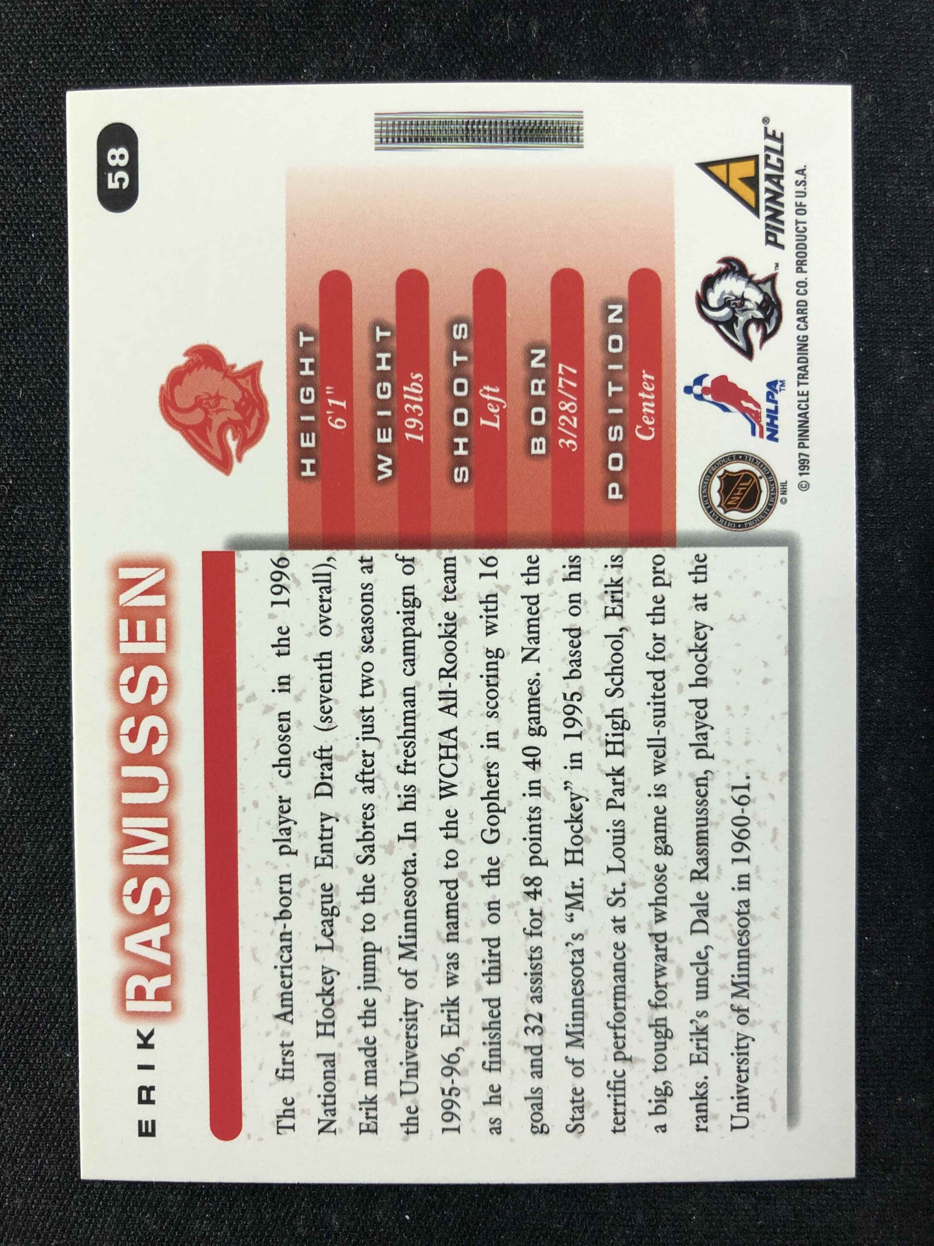 Sběratelská karta 1997/1998 Pinnacle Score Base 58 Erik Rasmussen