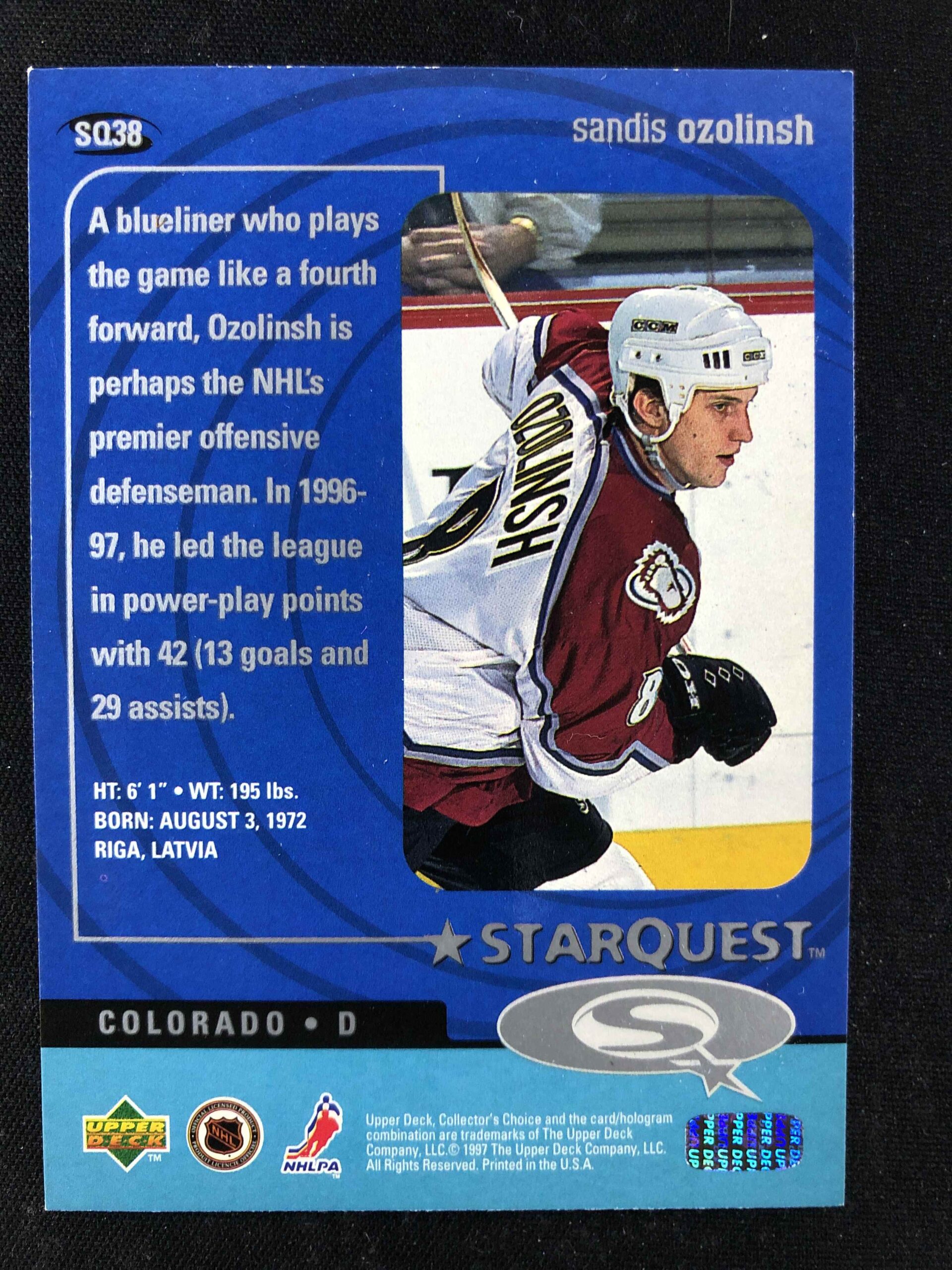 1997/1998 Upper Deck Collectors Choice StarQuest * SQ38 Sandis Ozolinsh Inzert