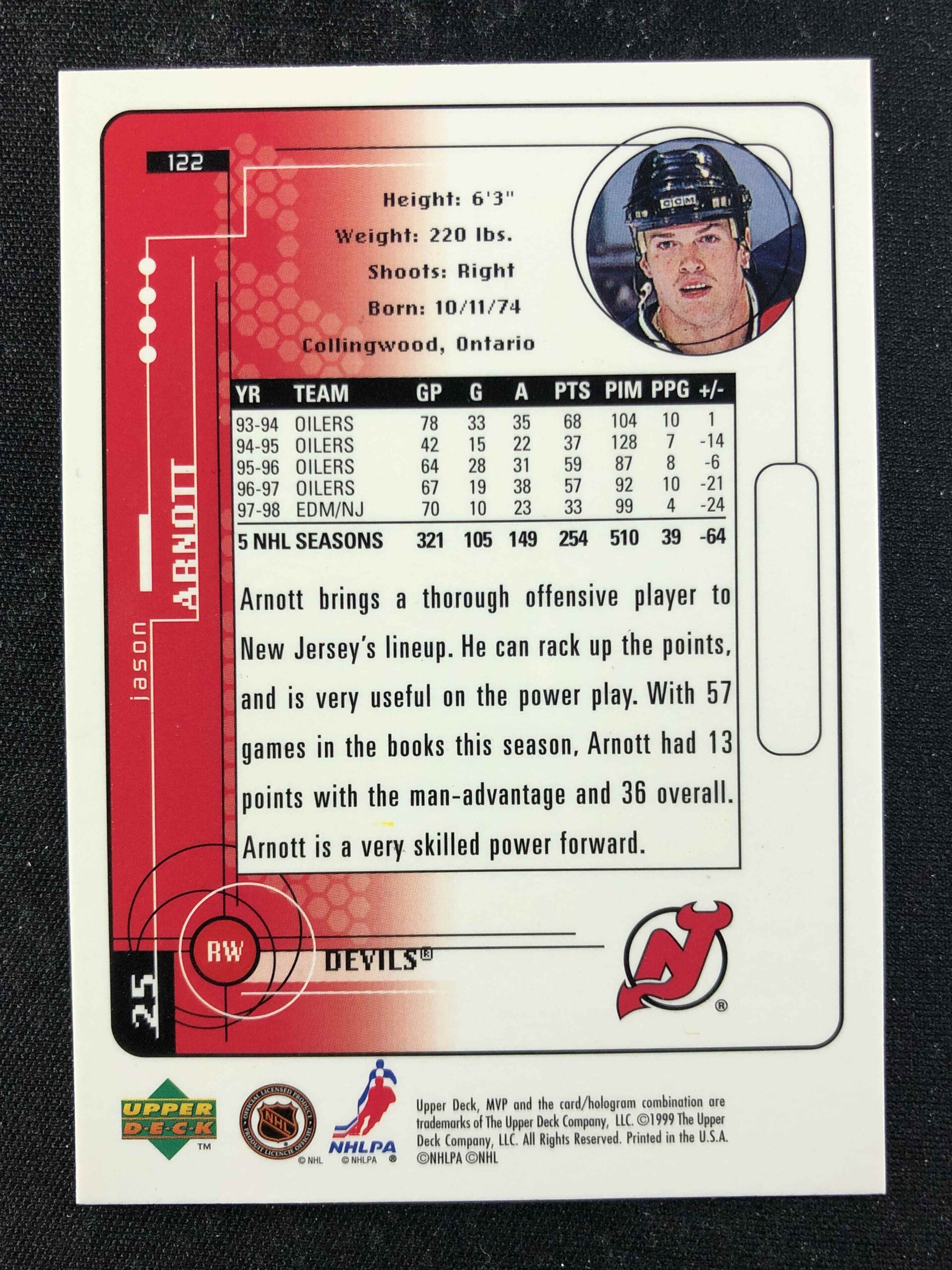 Sběratelská karta 1998/1999 Upper Deck MVP Base 122 Jason Arnott