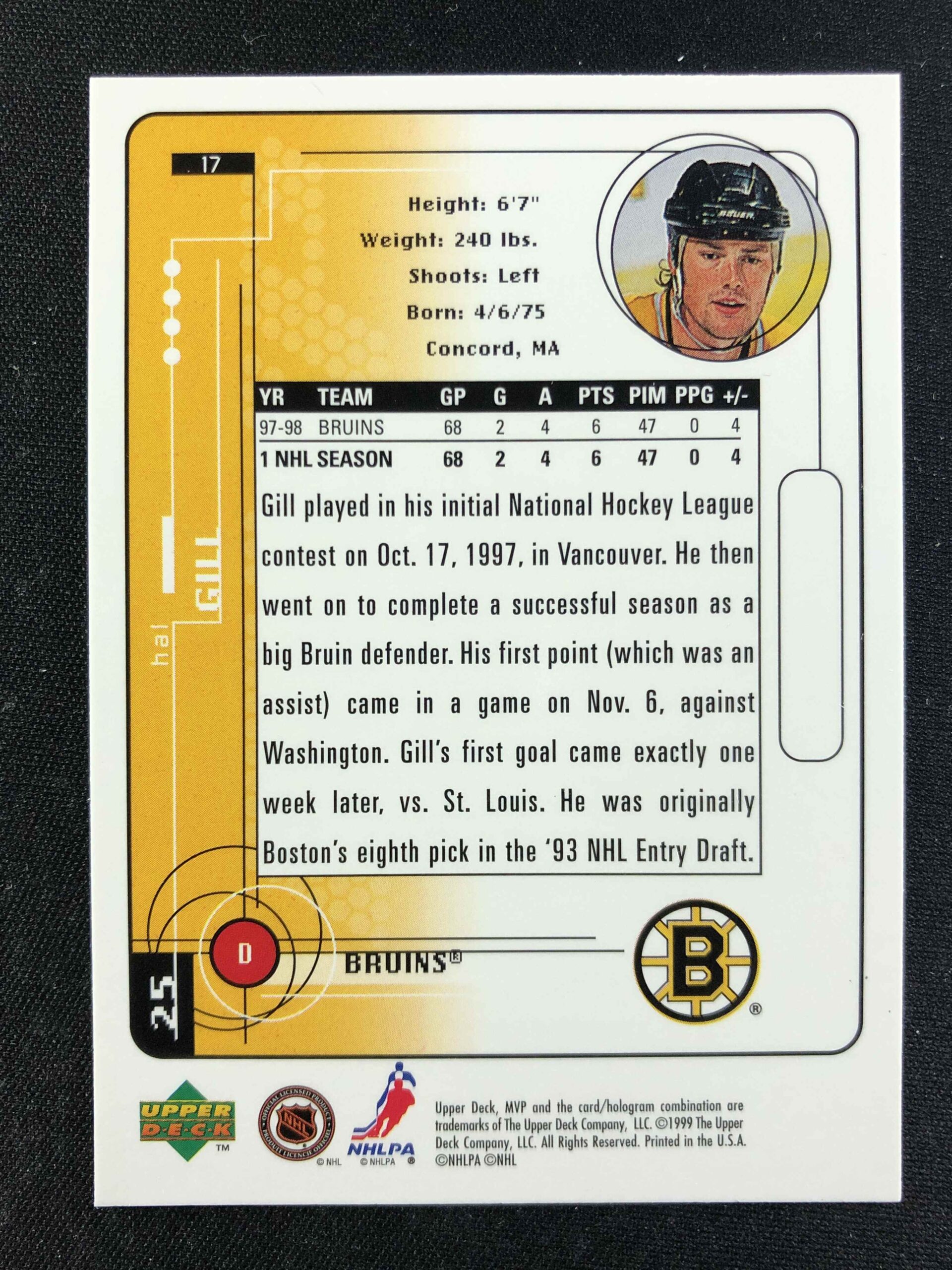 Sběratelská karta 1998/1999 Upper Deck MVP Base 17 Hal Gill