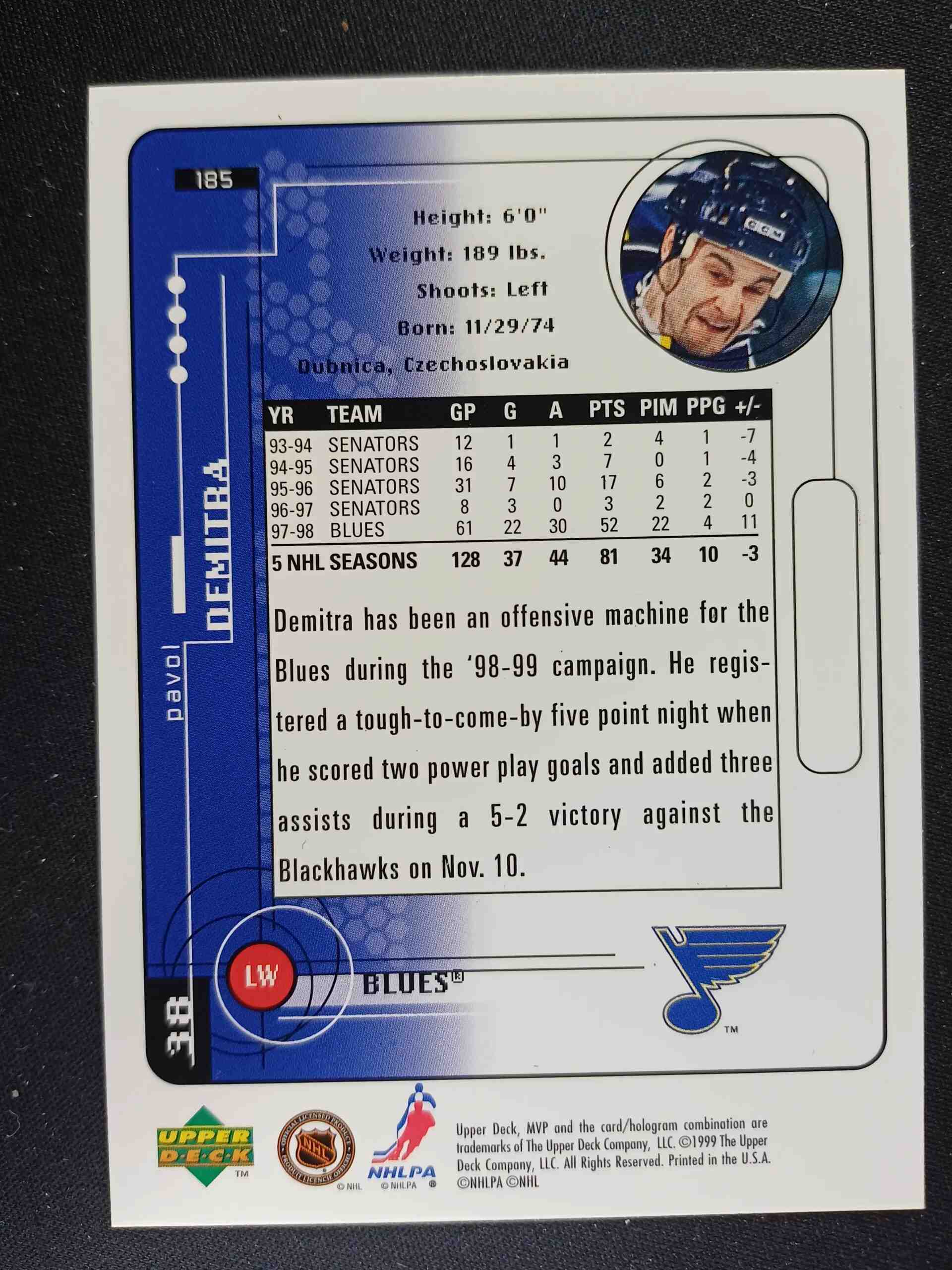 Sběratelská karta 1998/1999 Upper Deck MVP Base 185 Pavol Demitra