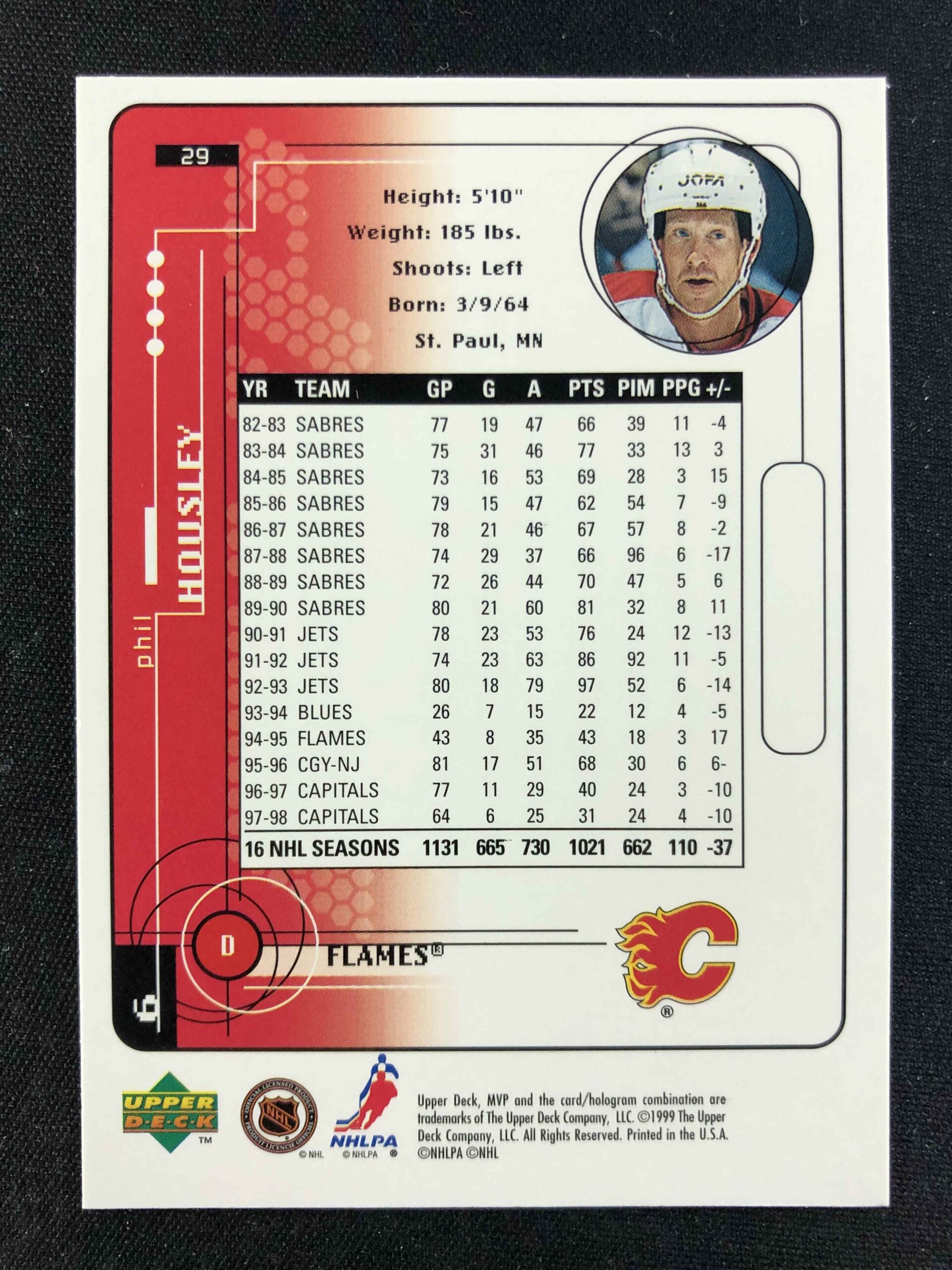 Sběratelská karta 1998/1999 Upper Deck MVP Base 29 Phil Housley
