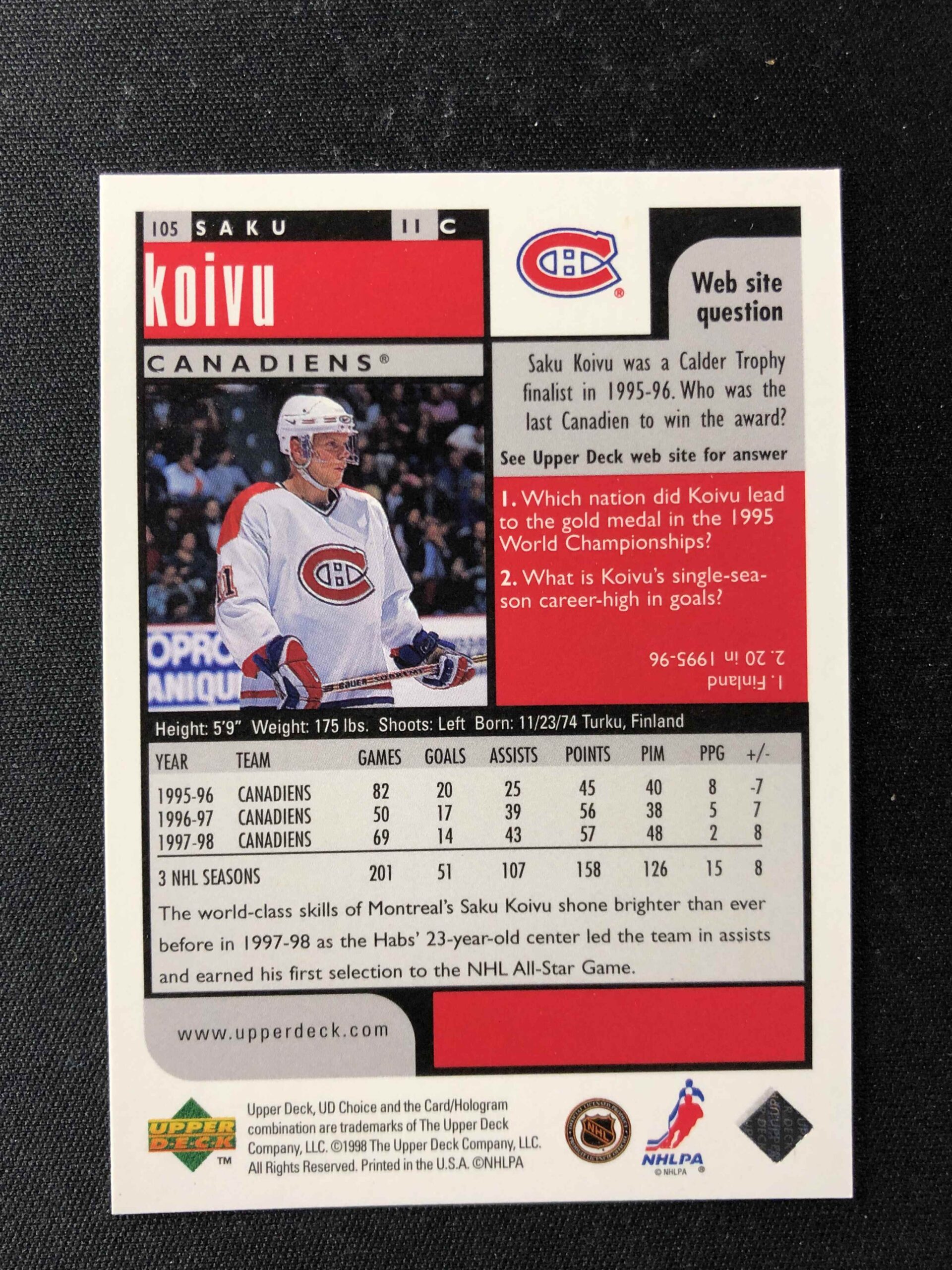 Sběratelská karta 1998/1999 Upper Deck UD Choice Choice Reserve 105 Saku Koivu Paralel