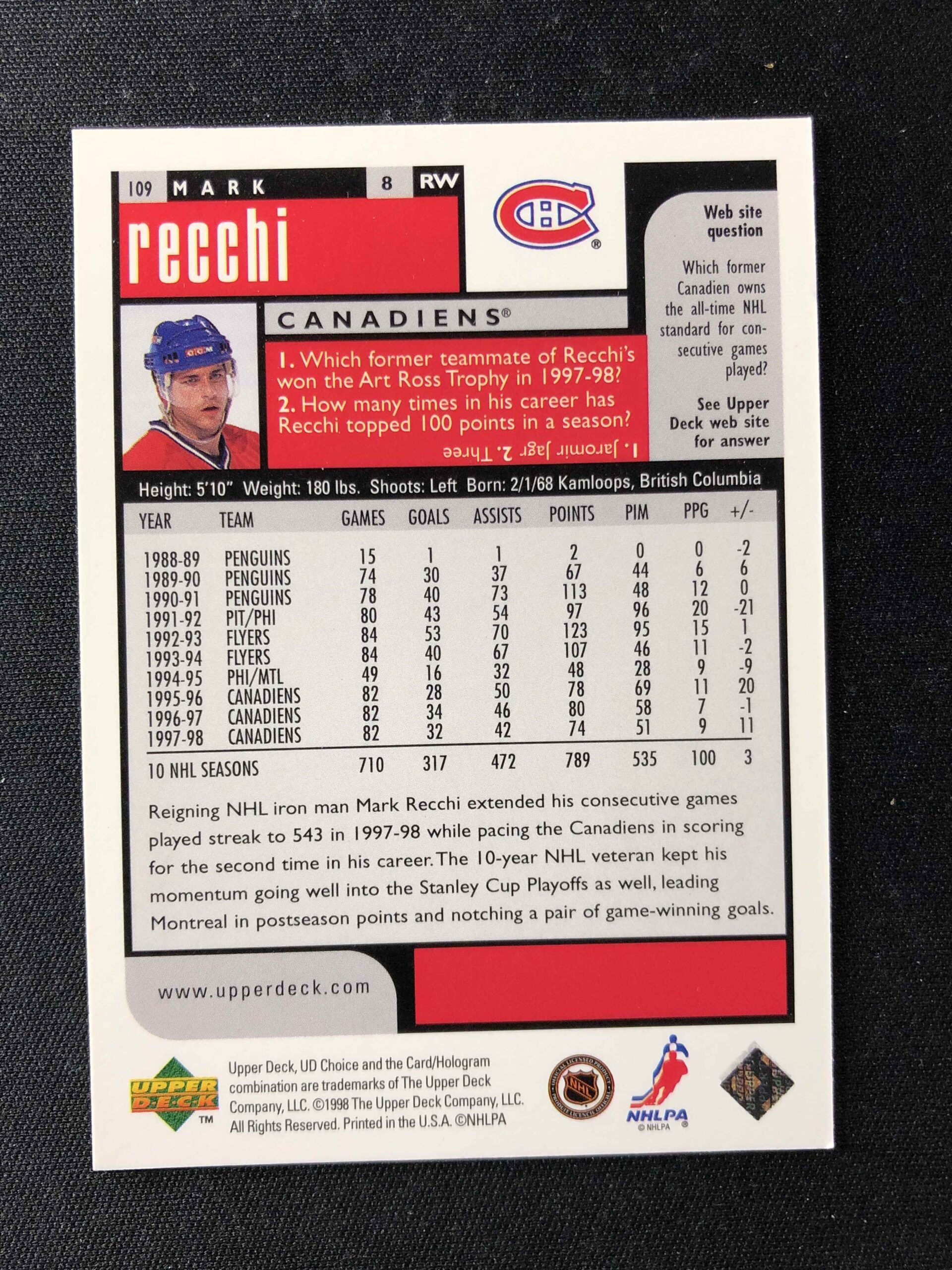 Sběratelská karta 1998/1999 Upper Deck UD Choice Choice Reserve 109 Mark Recchi Paralel