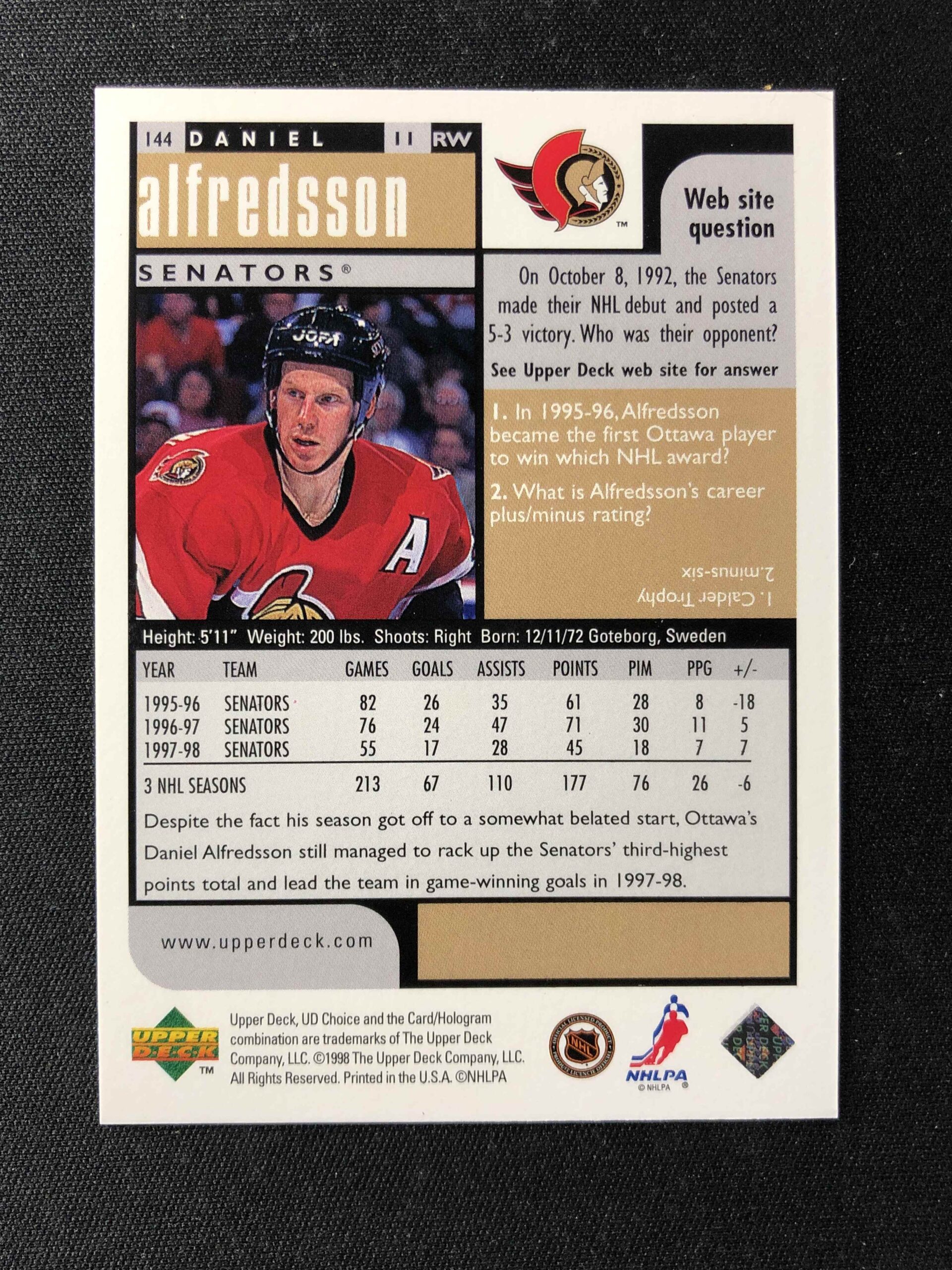 Sběratelská karta 1998/1999 Upper Deck UD Choice Choice Reserve 144 Daniel Alfredsson Paralel