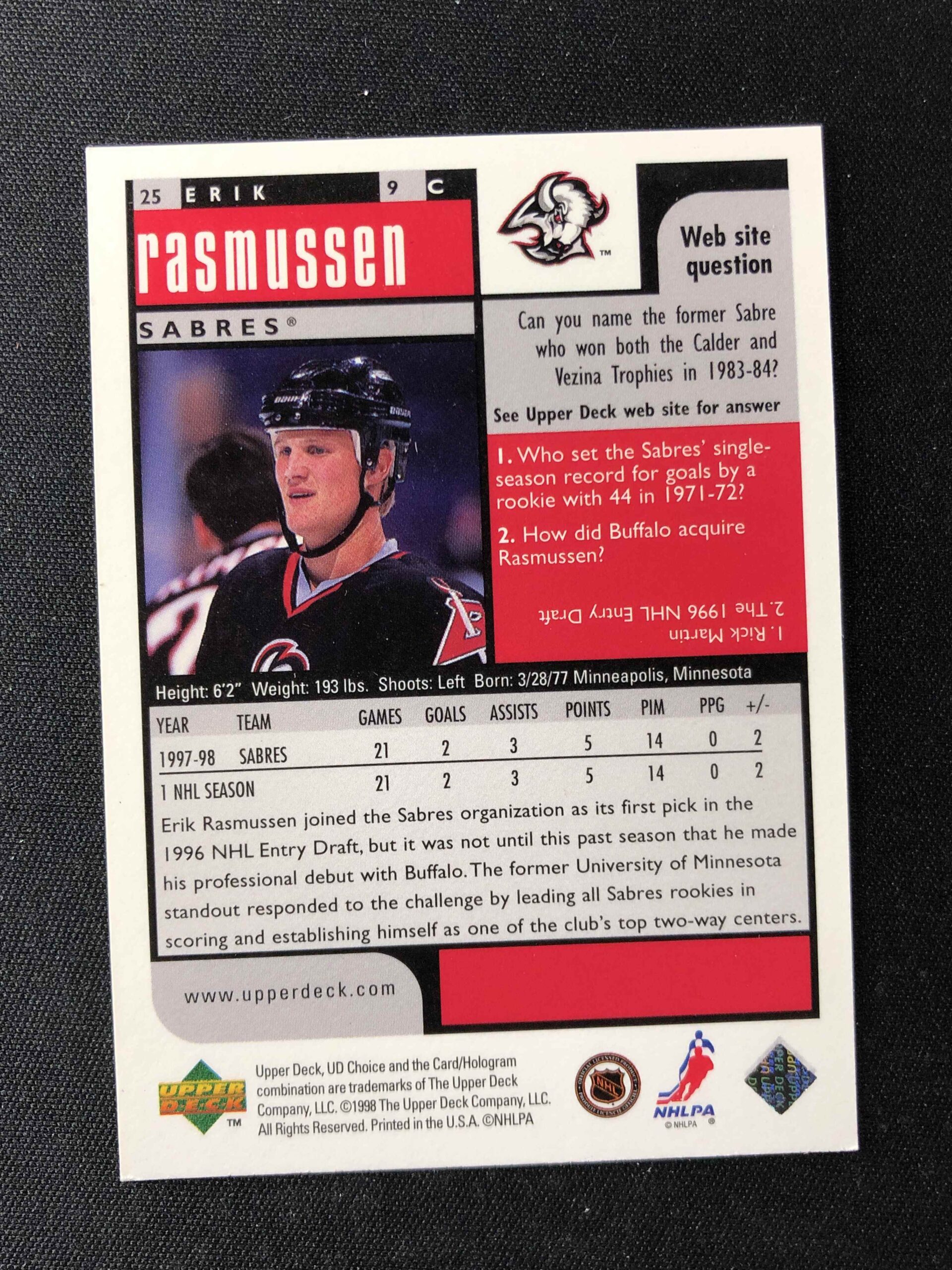 Sběratelská karta 1998/1999 Upper Deck UD Choice Choice Reserve 25 Erik Rasmussen Paralel