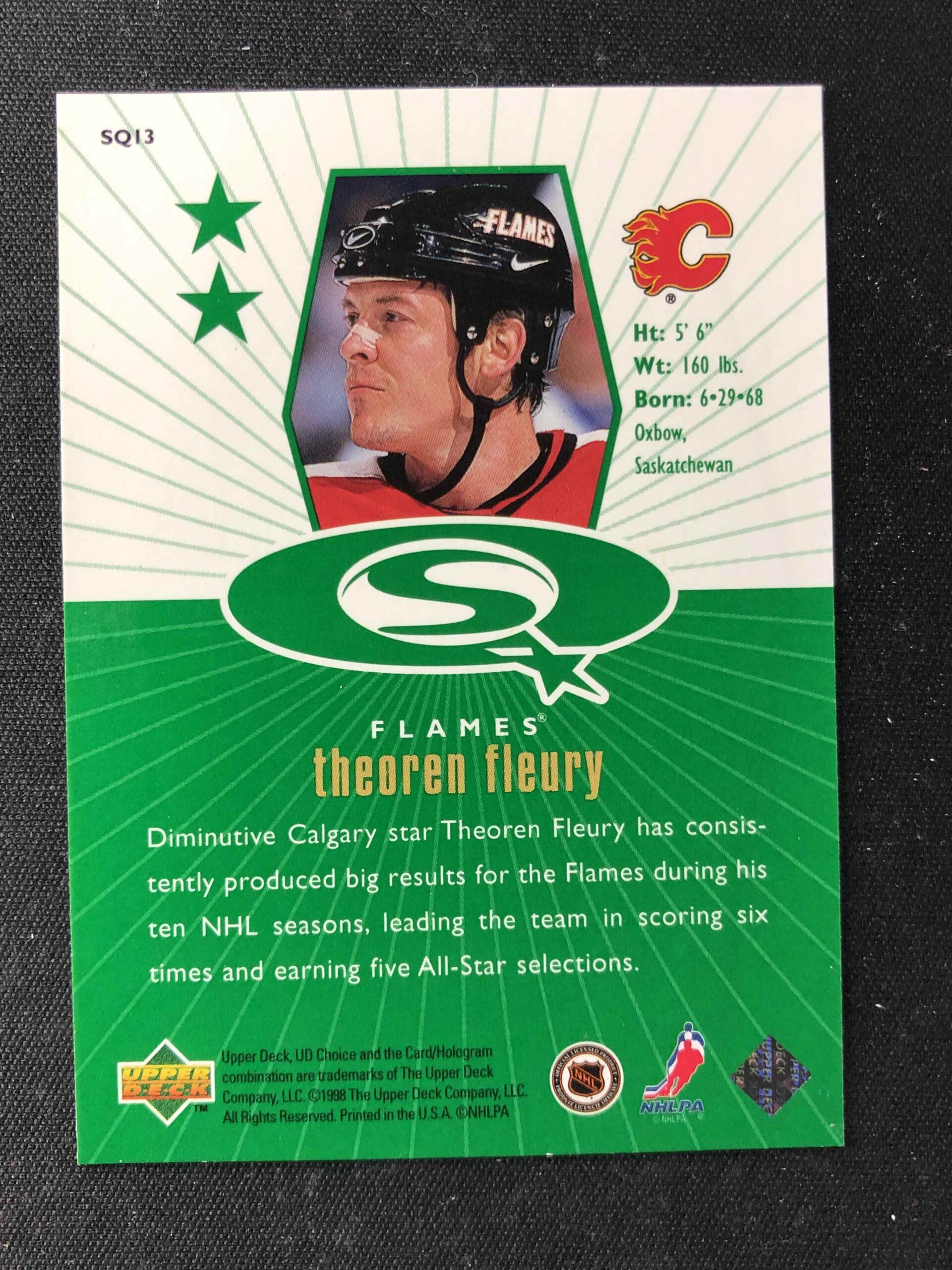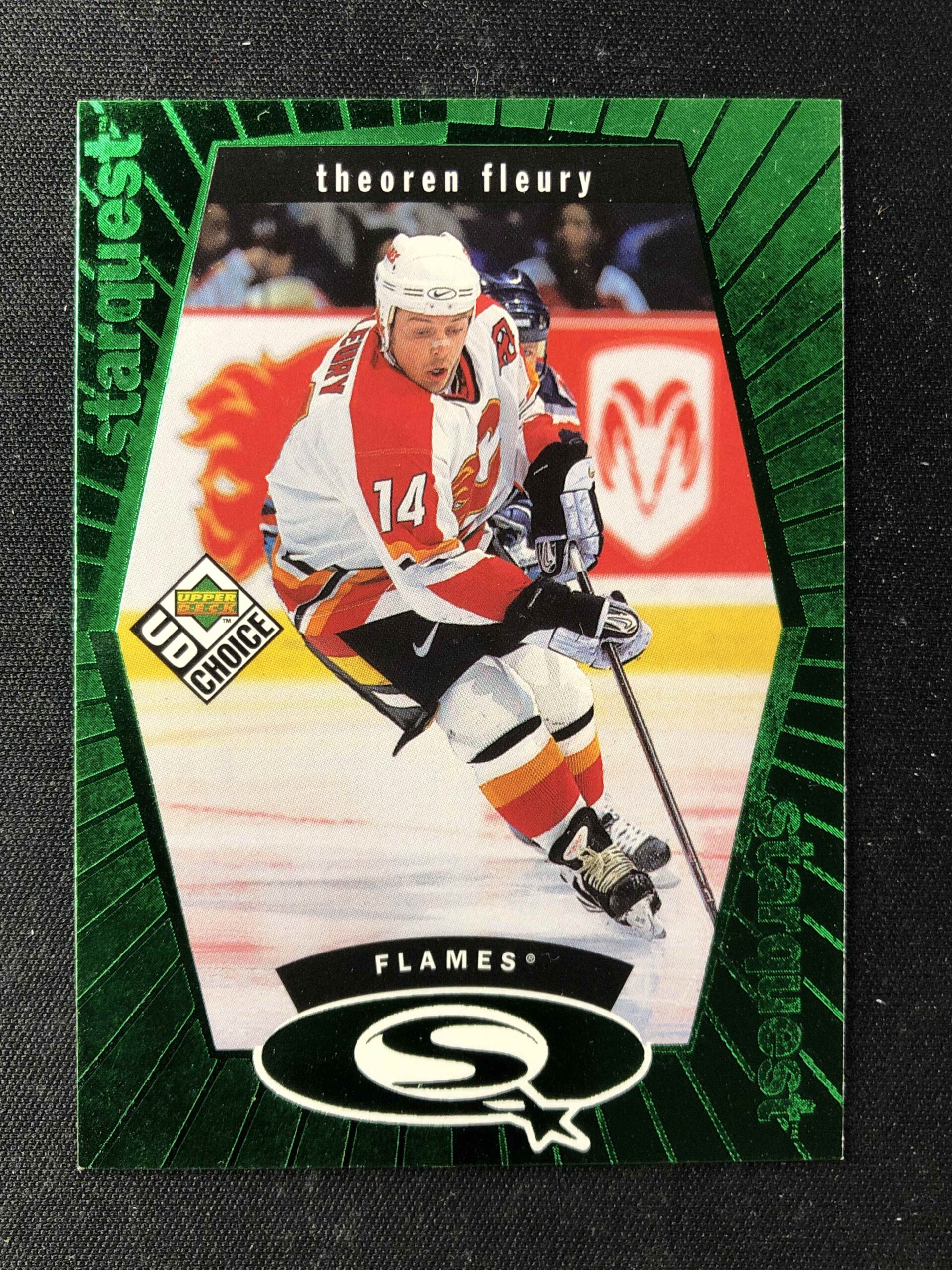 Sběratelská karta 1998/1999 Upper Deck UD Choice Starquest Green SQ13 Theoren Fleury Inzert