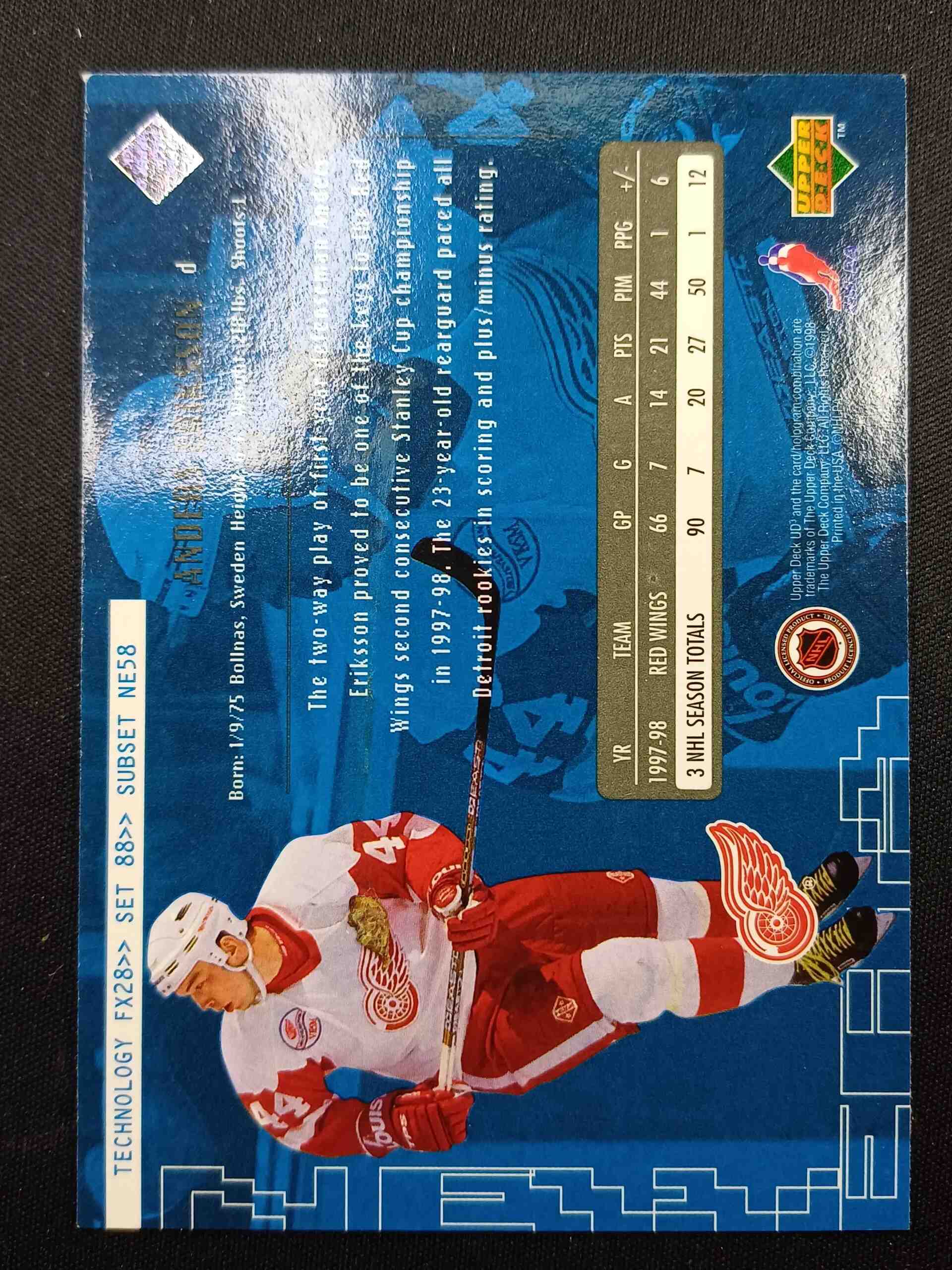 Sběratelská karta 1998/1999 Upper Deck UD3 Base NE58 Anders Eriksson