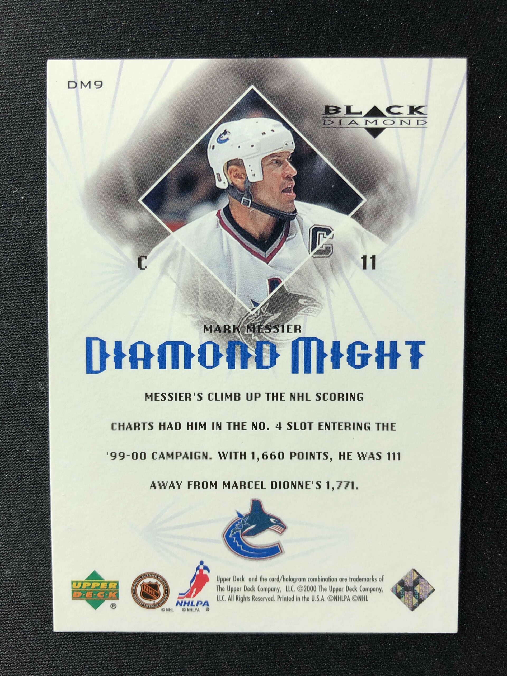Sběratelská karta 1999/2000 Upper Deck Black Diamond Diamond Might DM9 Mark Messier Inzert