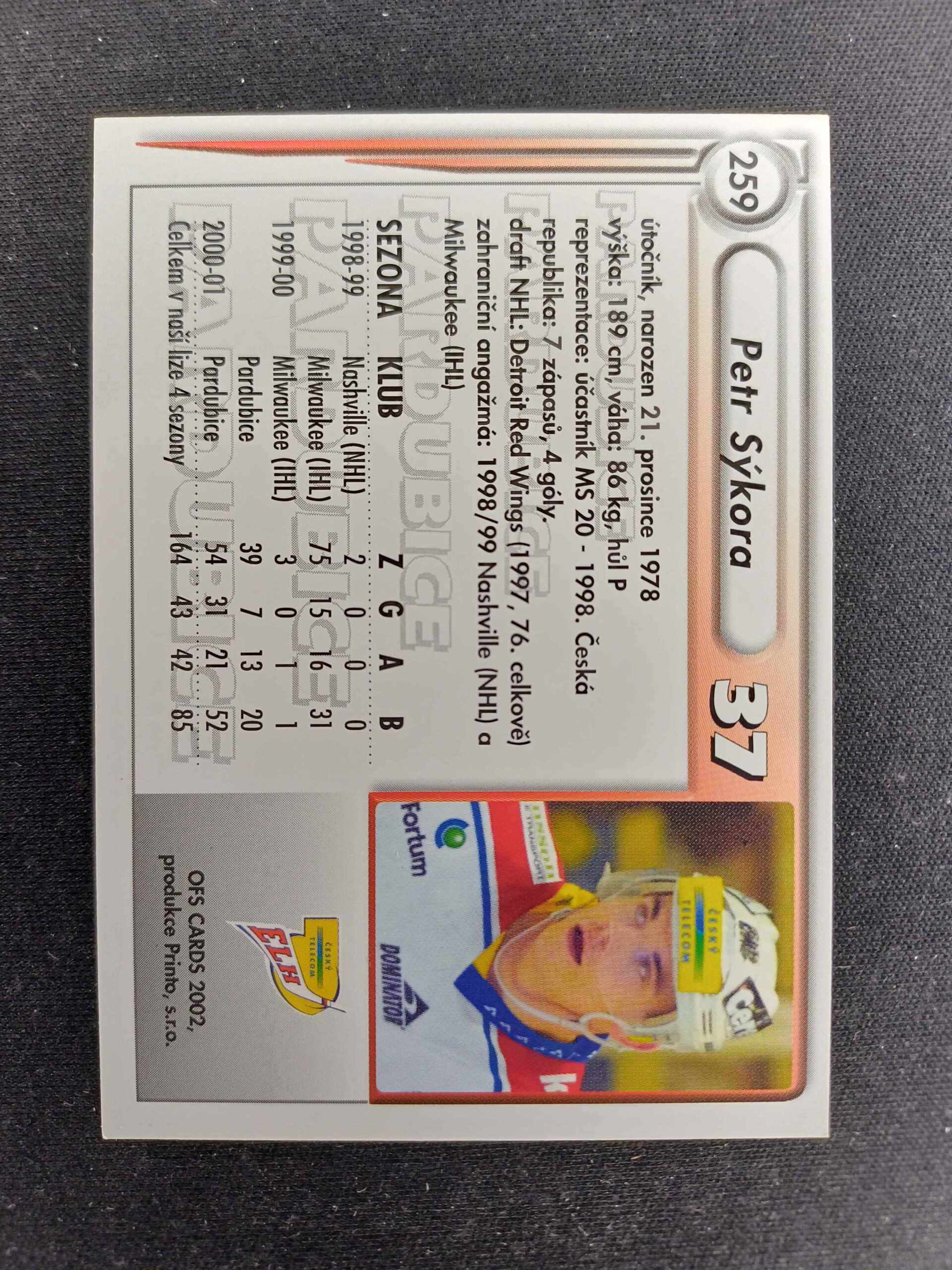 Sběratelská karta 2001/2002 OFS Cards Base 259 Petr Sýkora