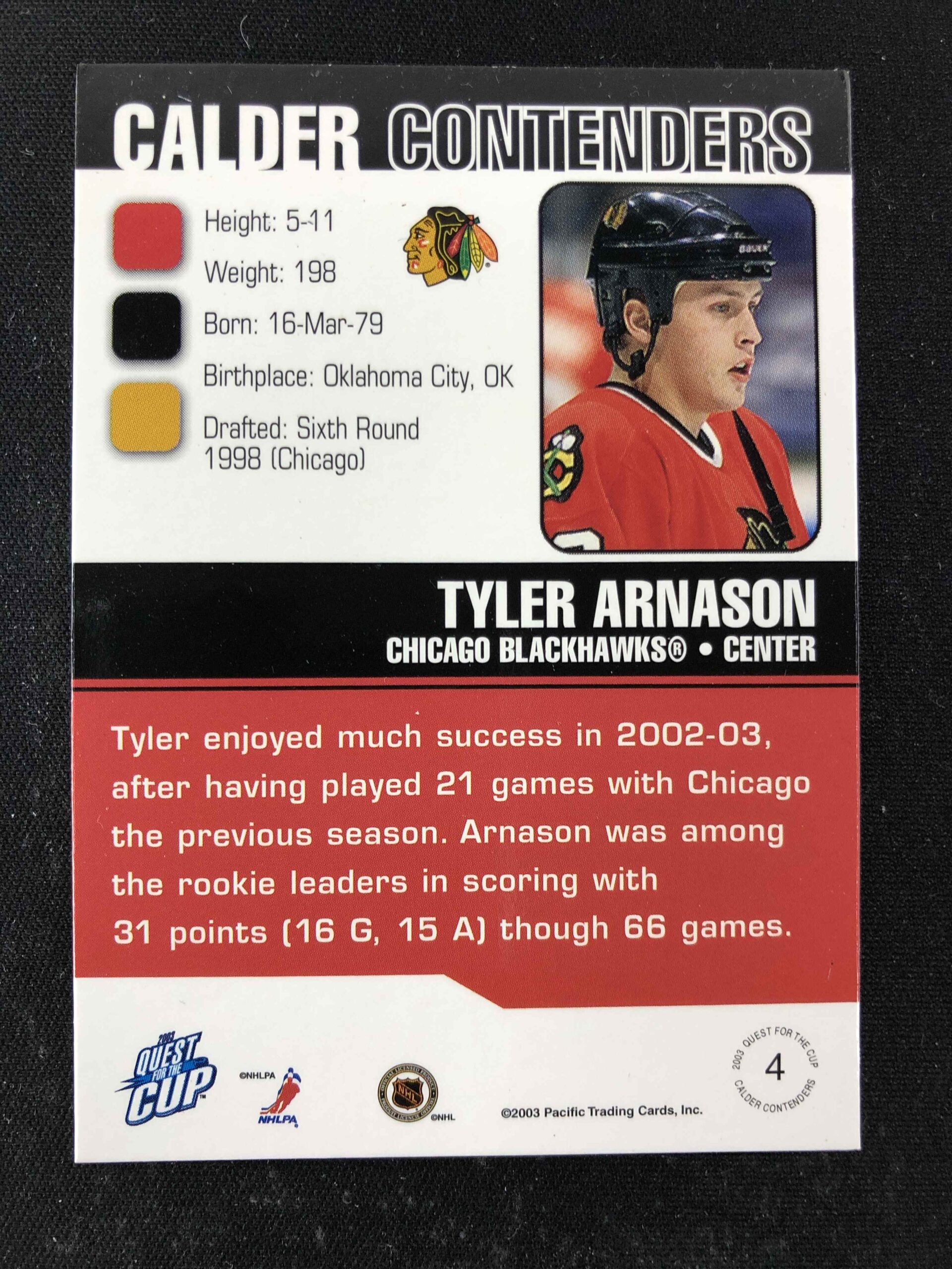 2002/2003 Pacific Quest for the Cup Calder Contenders 4 Tyler Arnason Inzert