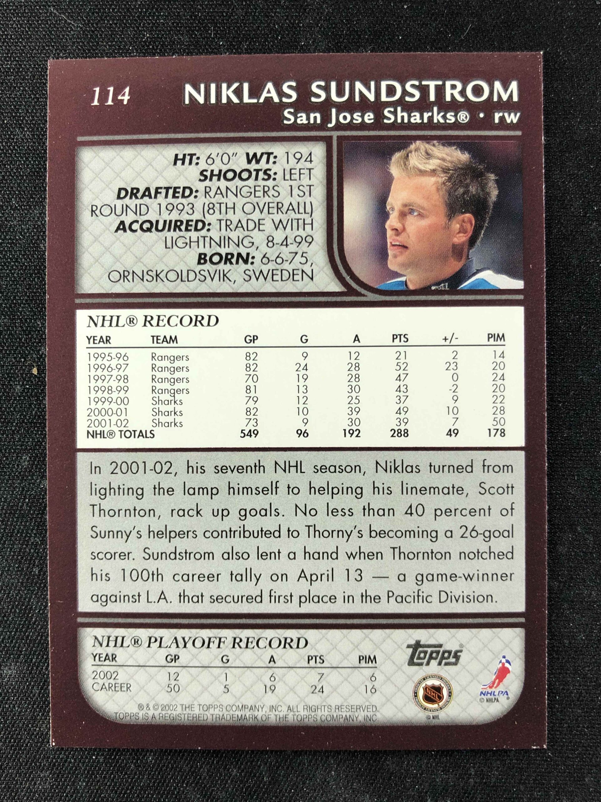 Sběratelská karta 2002/2003 Topps Base 114 Niklas Sundstrom
