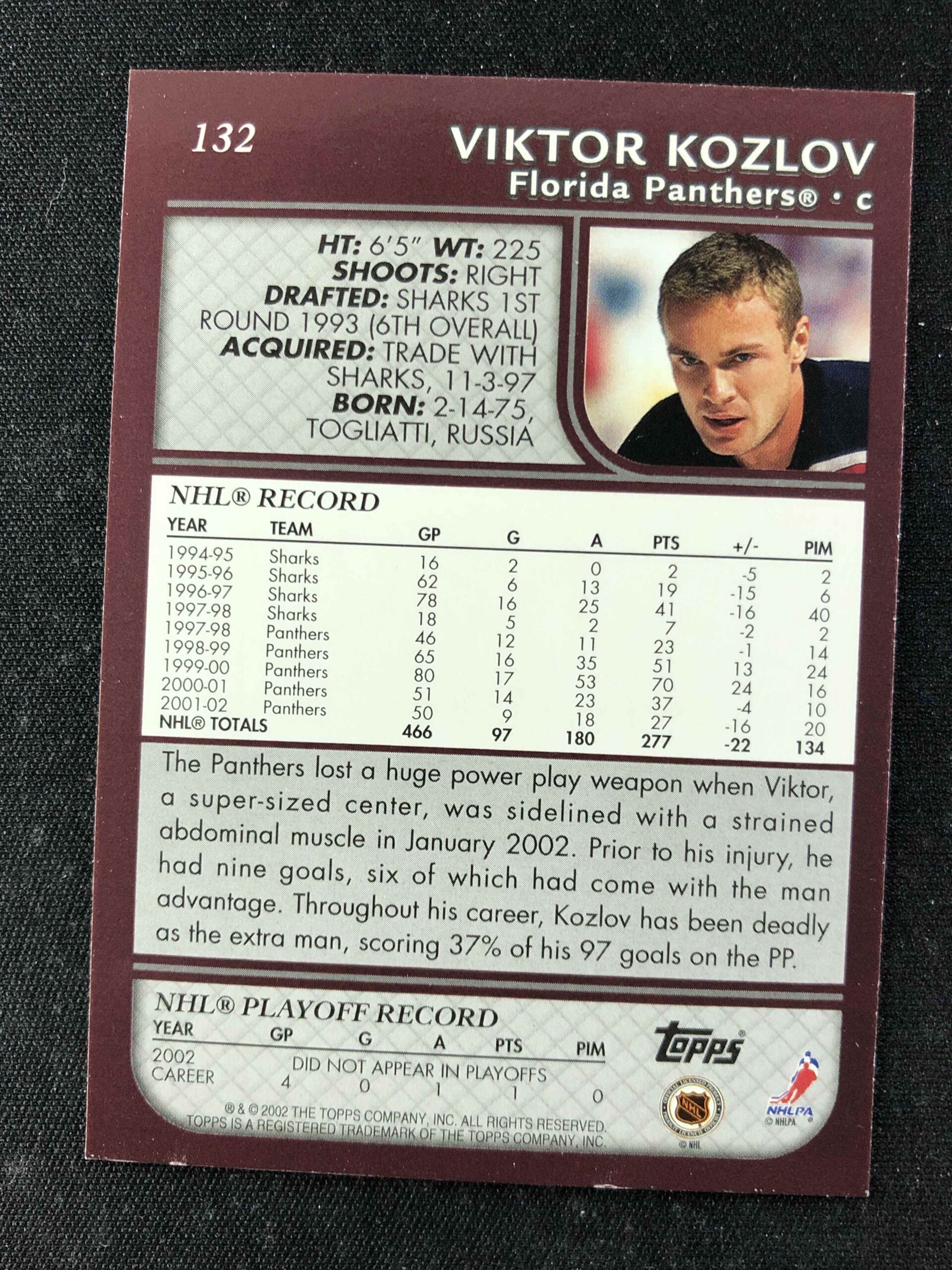 Sběratelská karta 2002/2003 Topps Base 132 Viktor Kozlov