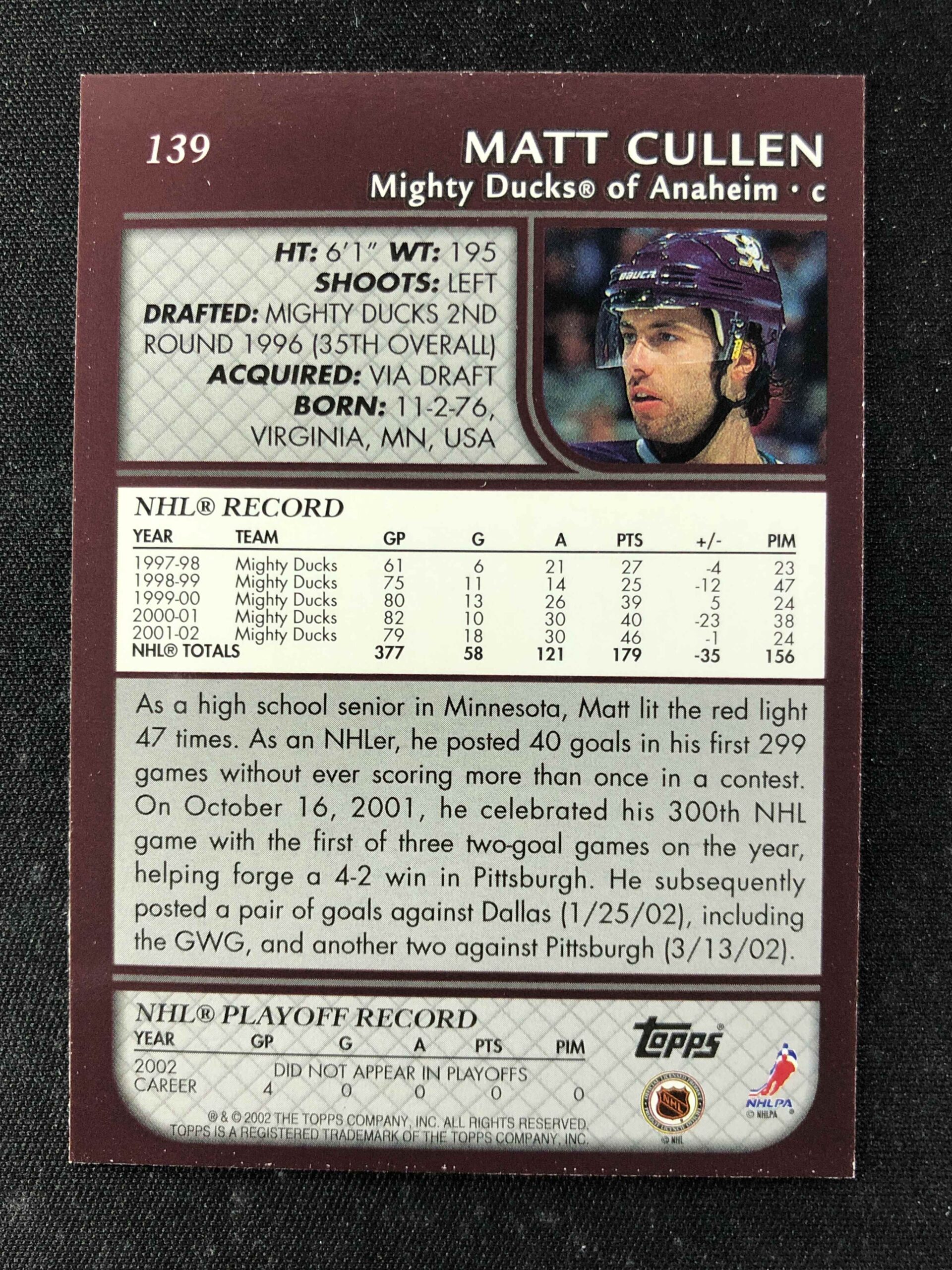 Sběratelská karta 2002/2003 Topps Base 139 Matt Cullen