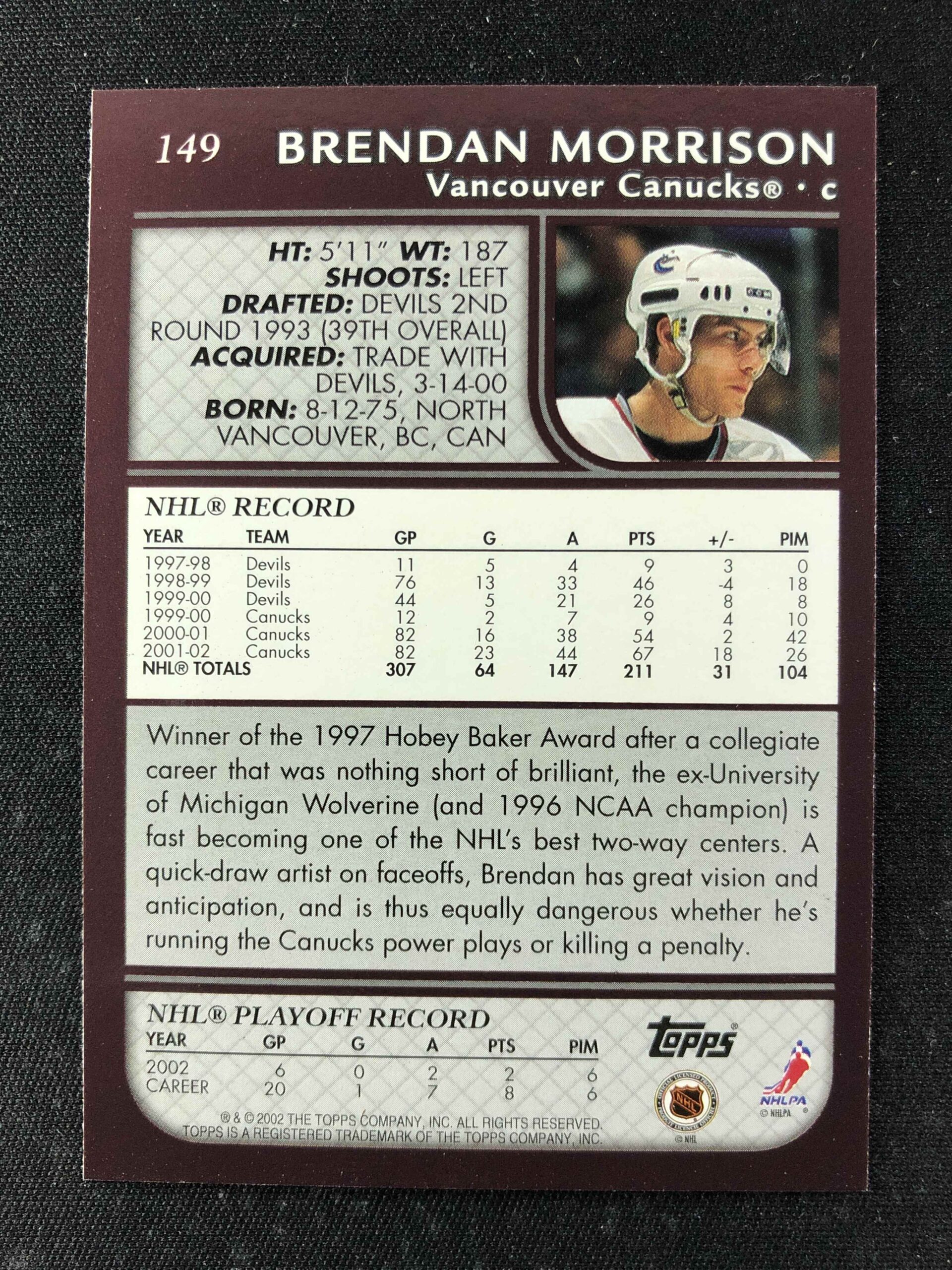 Sběratelská karta 2002/2003 Topps Base 149 Brendan Morrison