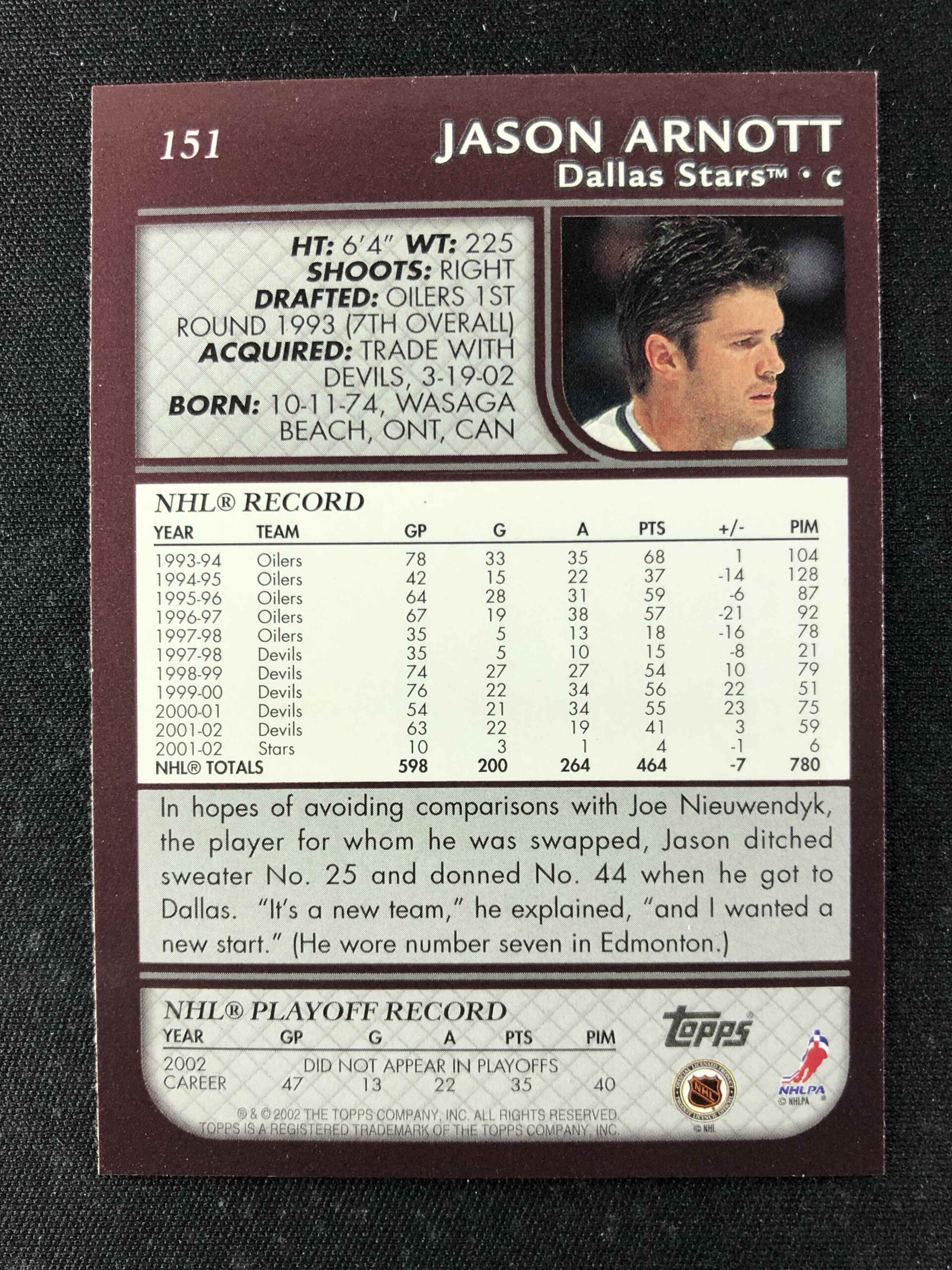 Sběratelská karta 2002/2003 Topps Base 151 Jason Arnott