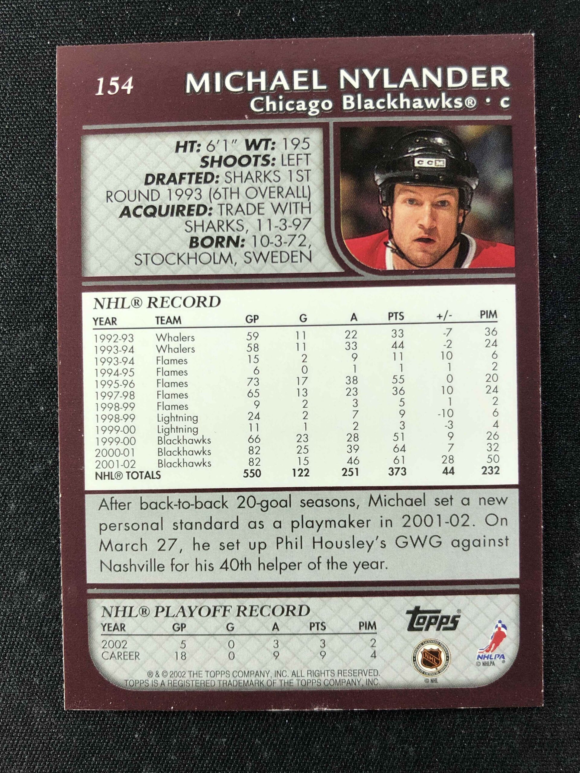 Sběratelská karta 2002/2003 Topps Base 154 Michael Nylander
