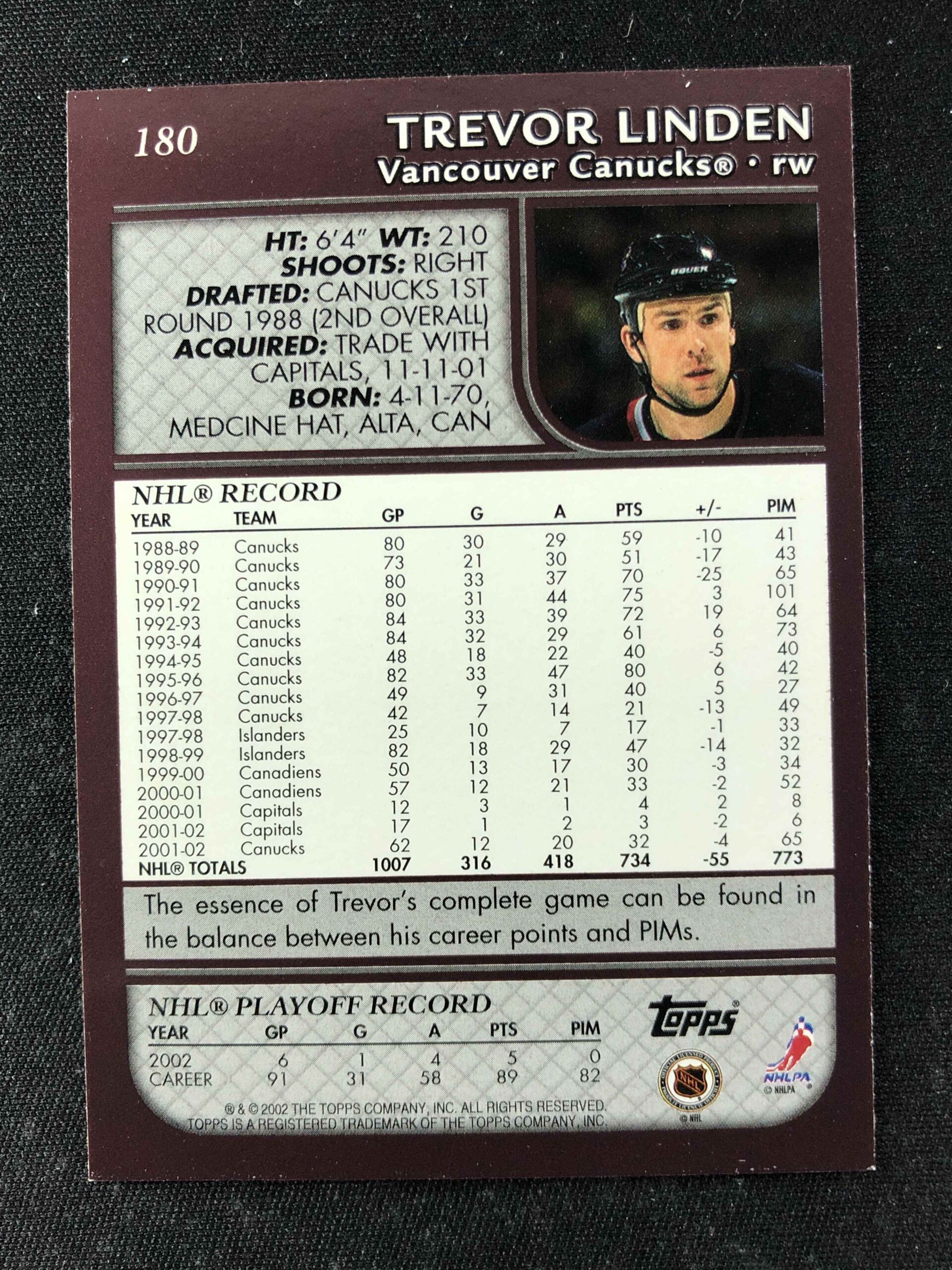 Sběratelská karta 2002/2003 Topps Base 180 Trevor Linden
