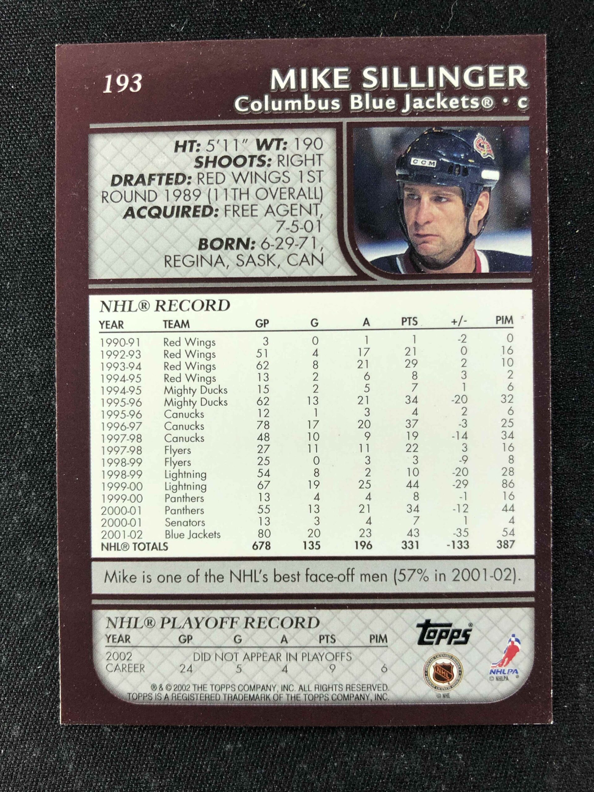 Sběratelská karta 2002/2003 Topps Base 193 Mike Sillinger