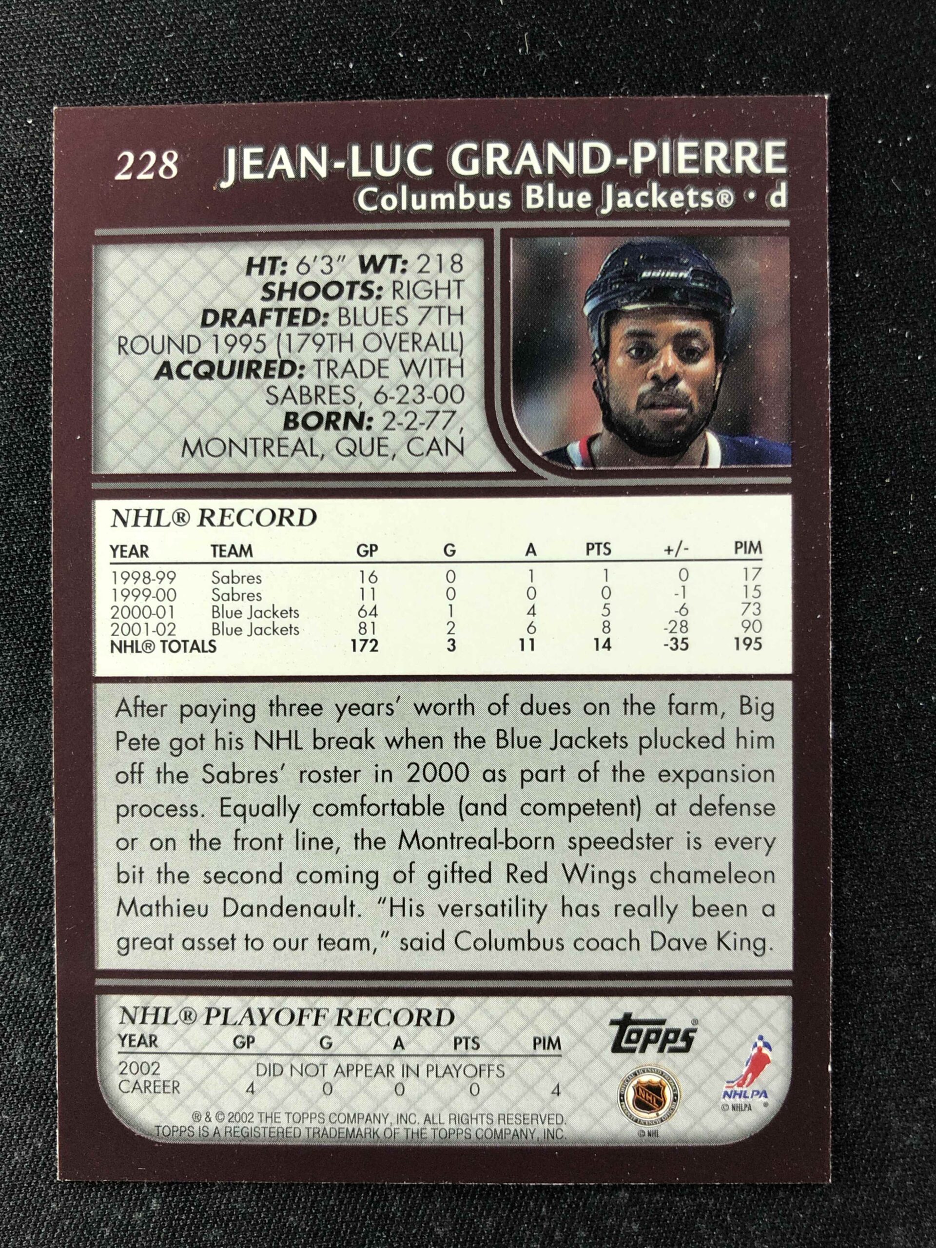 Sběratelská karta 2002/2003 Topps Base 228 Jean-Luc Grand-Pierre