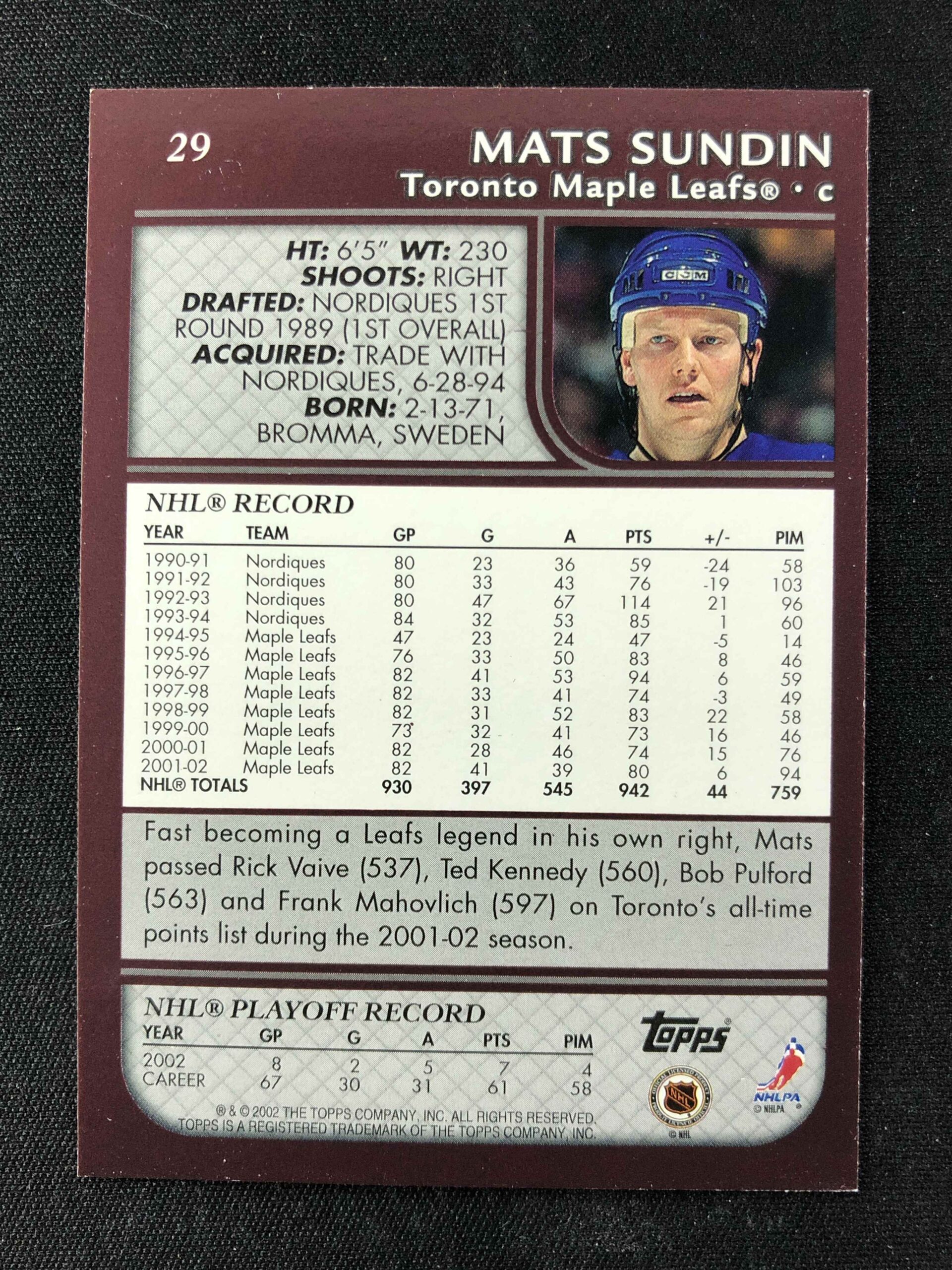 Sběratelská karta 2002/2003 Topps Base 29 Mats Sundin