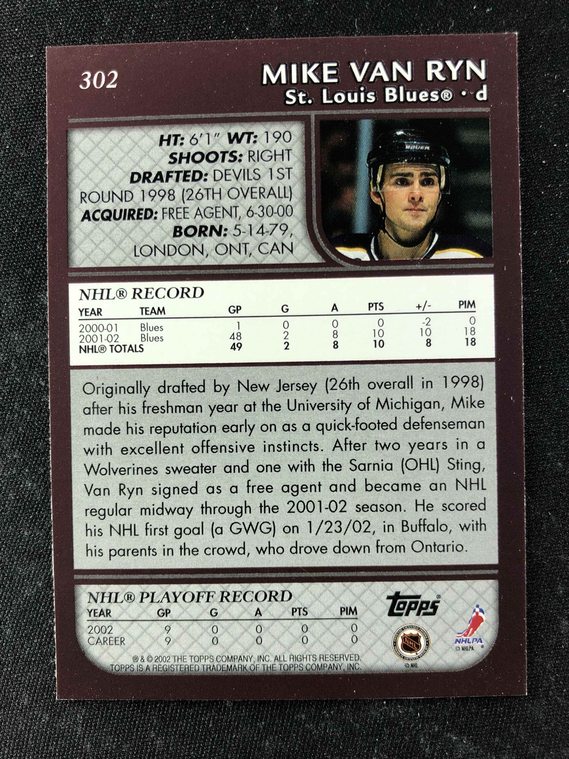 Sběratelská karta 2002/2003 Topps Base 302 Mike Van Ryn