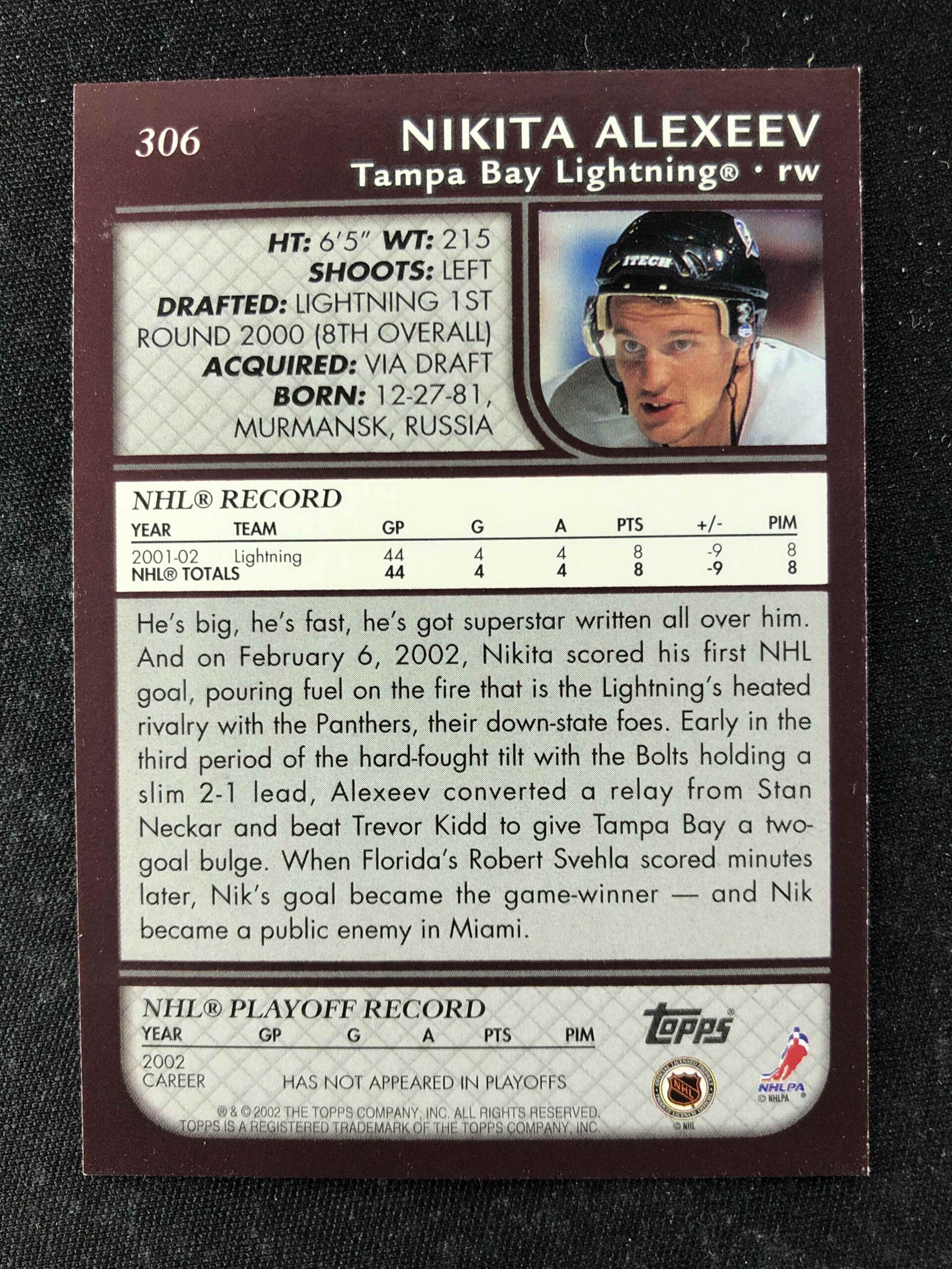 Sběratelská karta 2002/2003 Topps Base 306 Nikita Alexeev