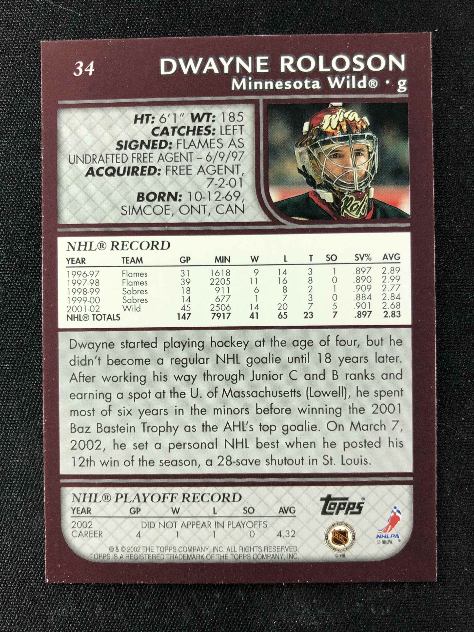 2002/2003 Topps Base 34 Dwayne Roloson