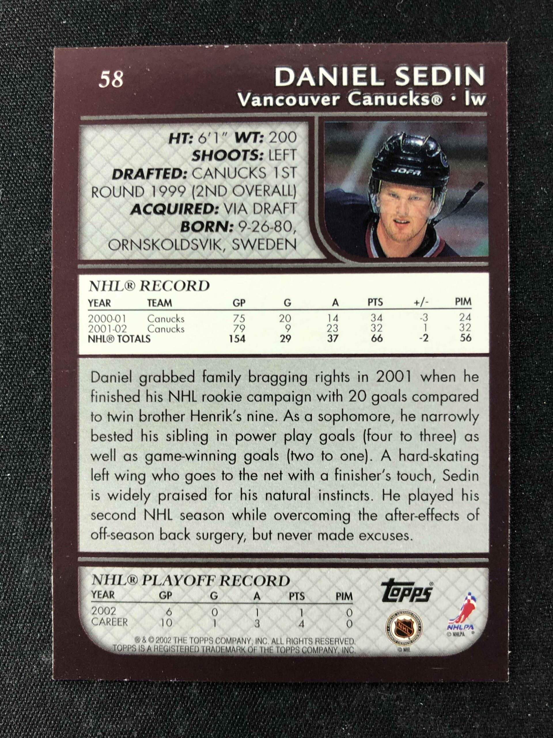 Sběratelská karta 2002/2003 Topps Base 58 Daniel Sedin