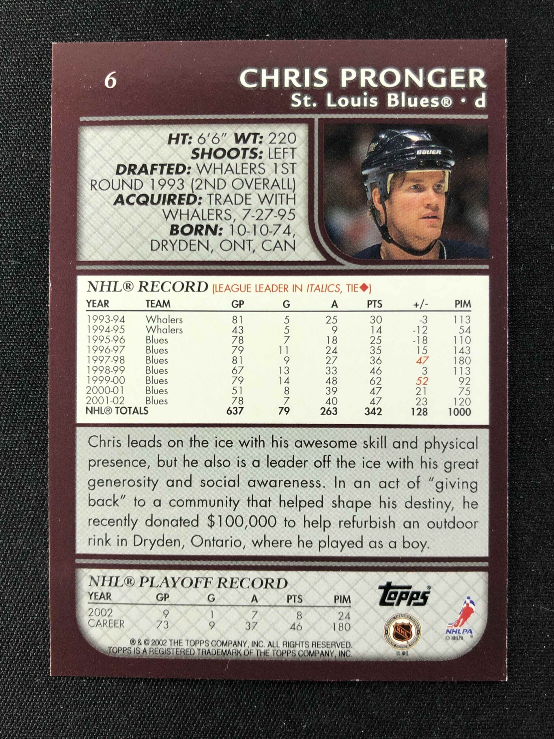 Sběratelská karta 2002/2003 Topps Base 6 Chris Pronger