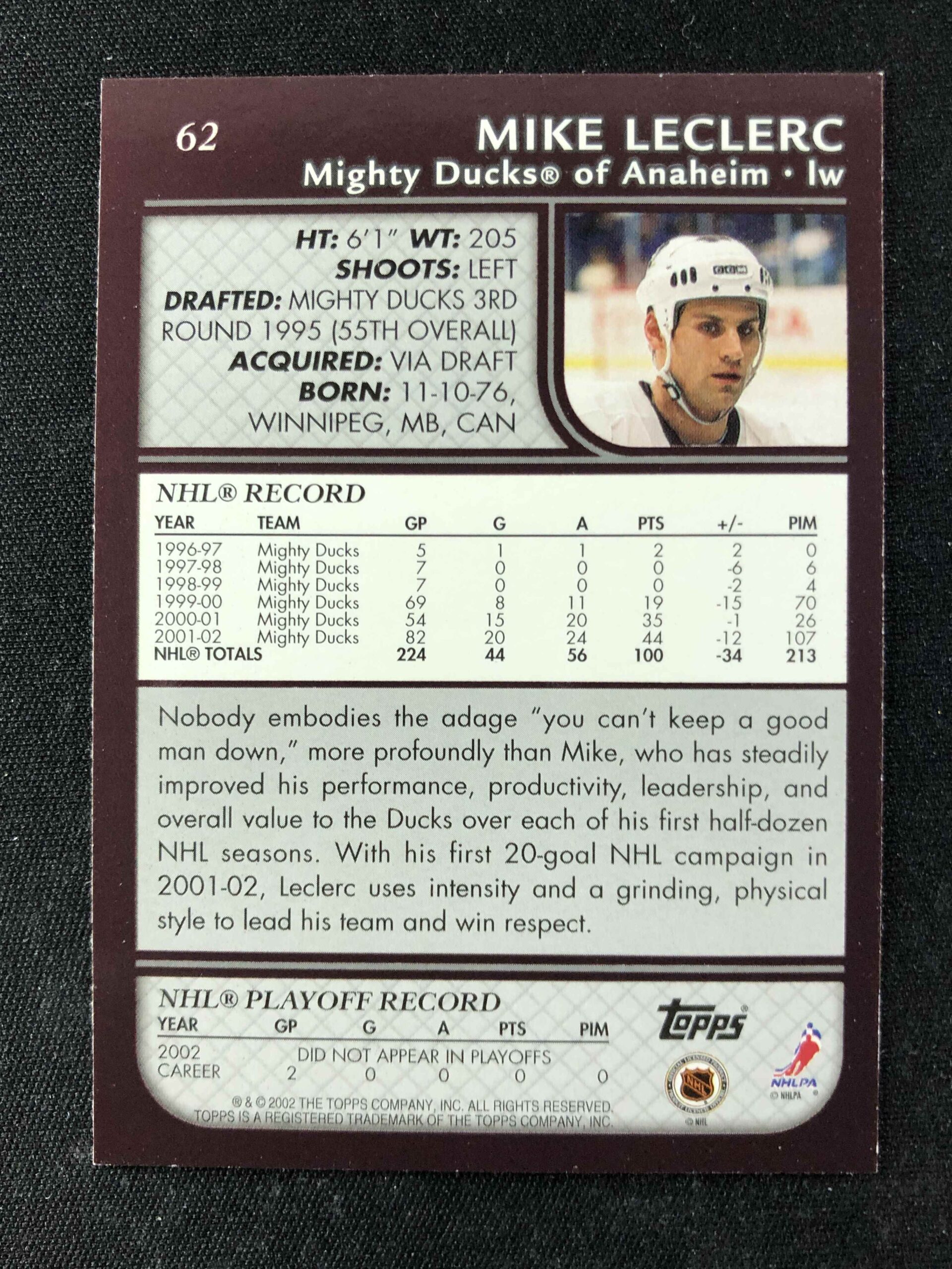 Sběratelská karta 2002/2003 Topps Base 62 Mike Leclerc
