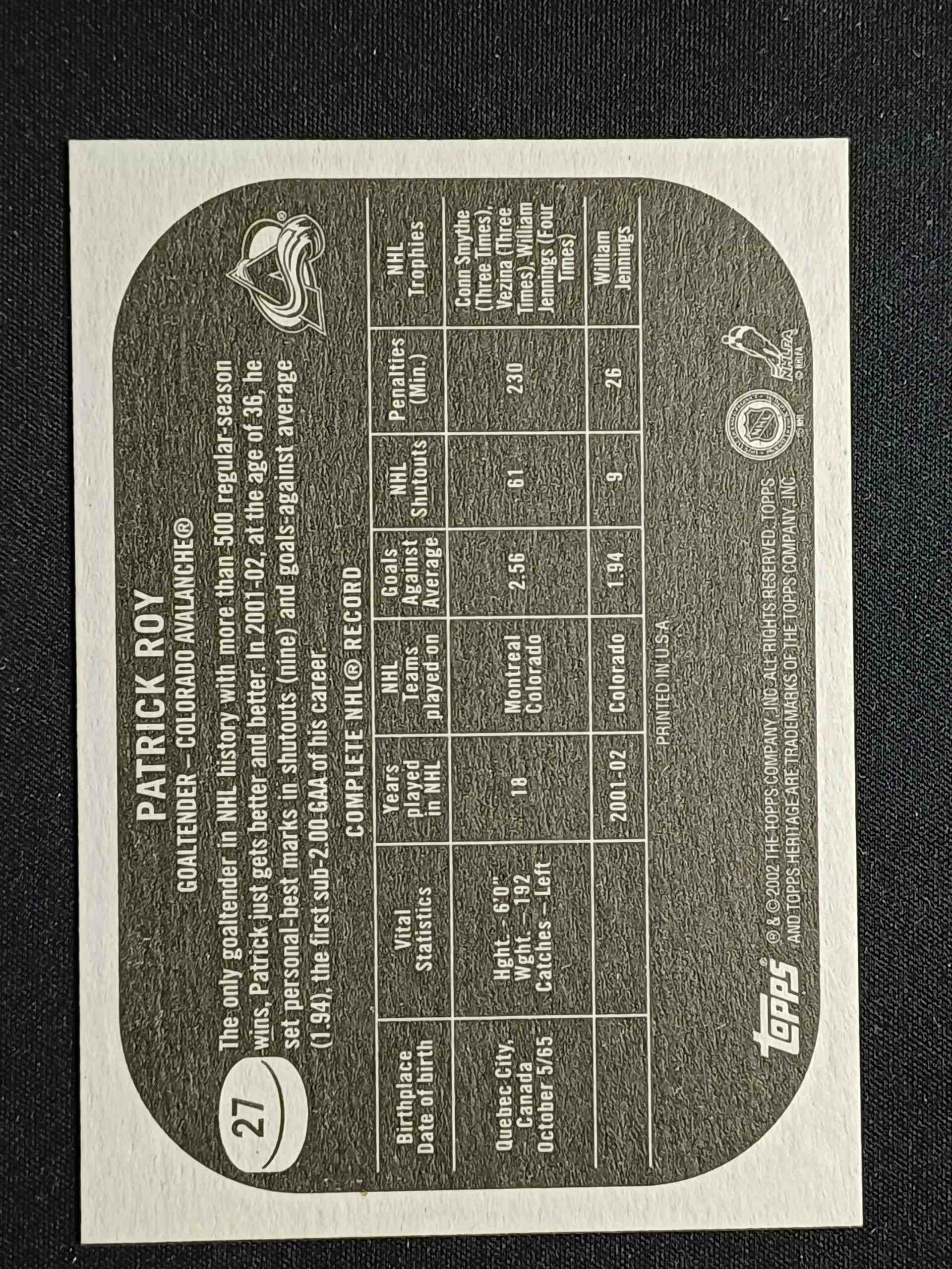 2002/2003 Topps Heritage USA Test Parallel 27 Patrick Roy Paralel