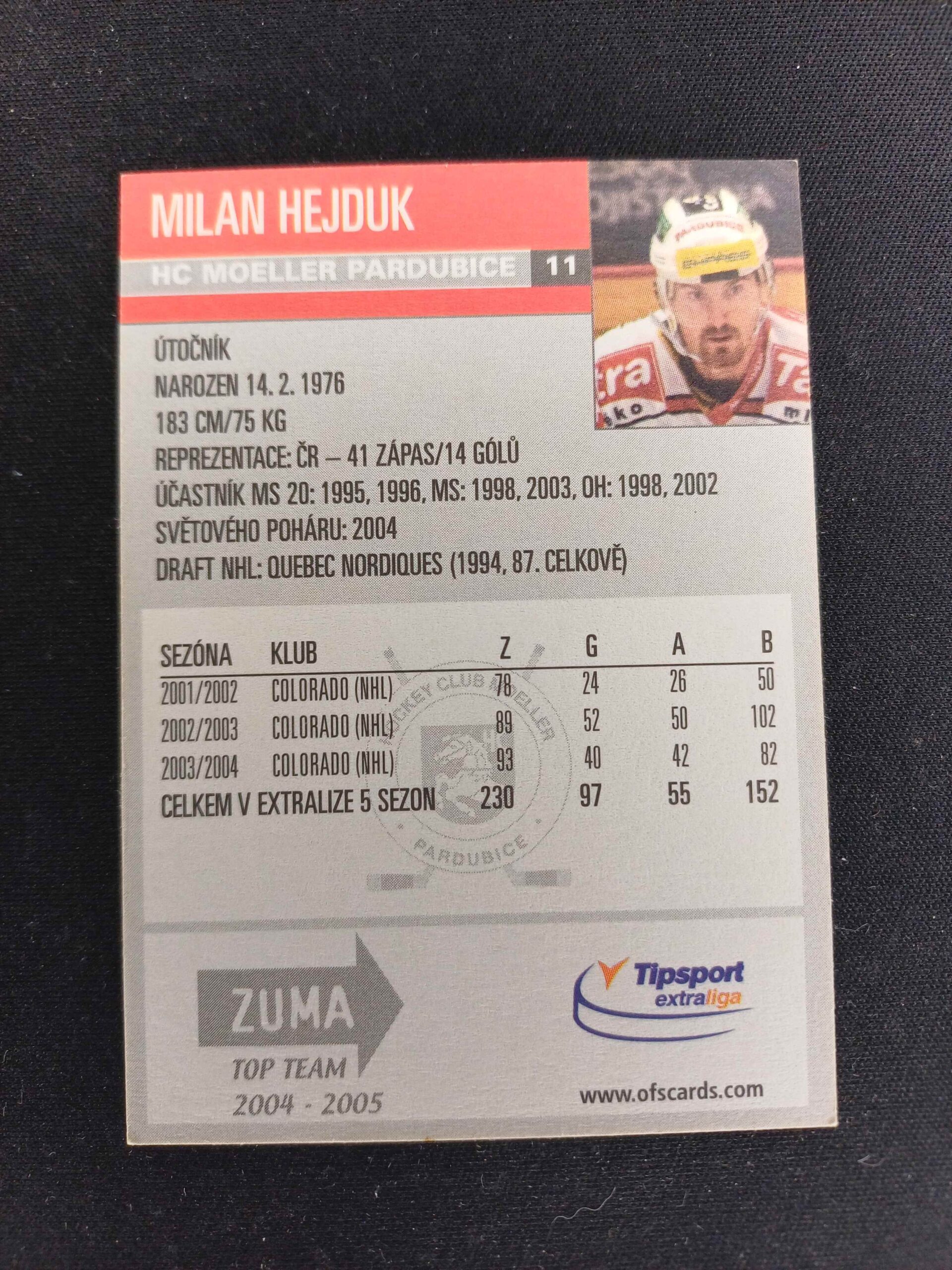2004/2005 OFS Plus Limited 11 Milan Hejduk Inzert