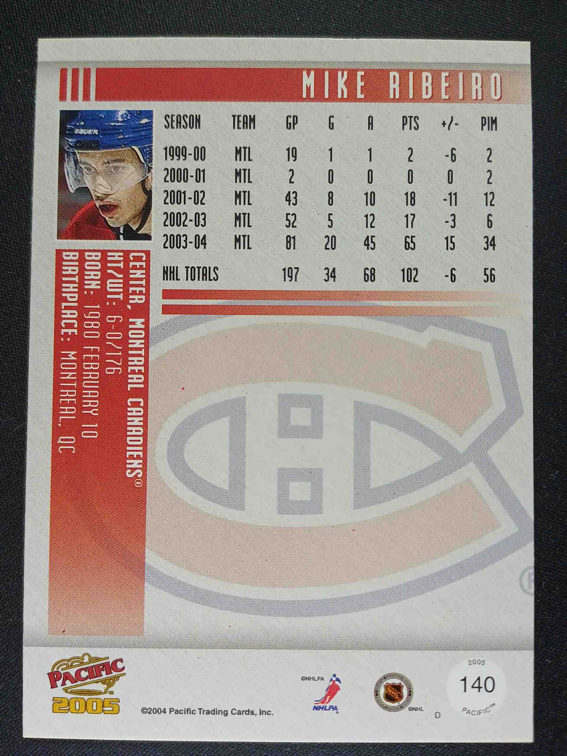 Sběratelská karta 2004/2005 Pacific 2005 Red 140 Mike Ribeiro Paralel
