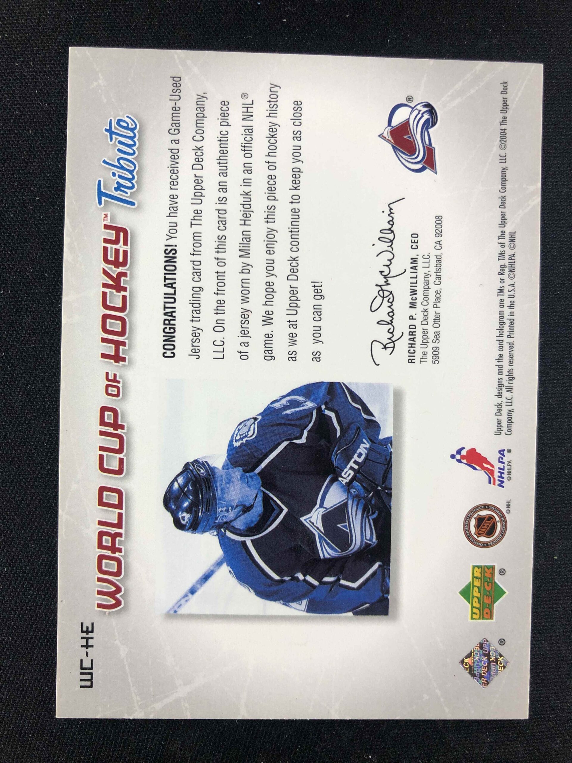 2004/2005 Upper Deck World Cup of Hockey Tribute WC-HE Milan Hejduk Jersey
