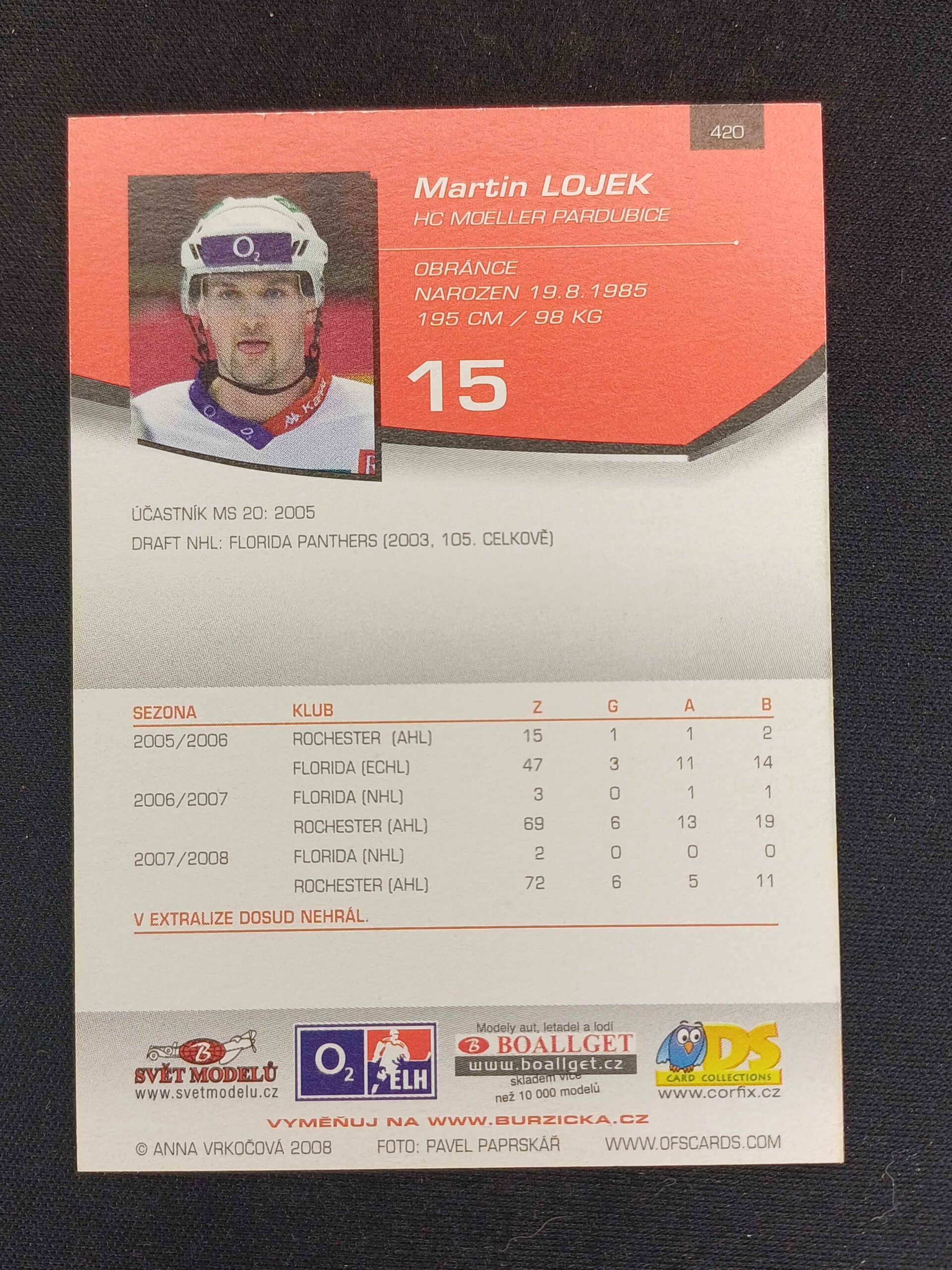 Sběratelská karta 2008/2009 OFS Plus Base 420 Martin Lojek