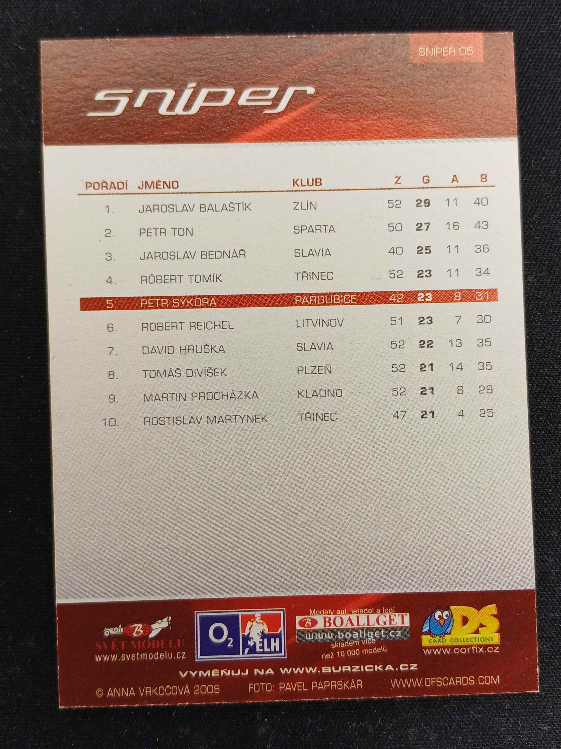 Sběratelská karta 2008/2009 OFS Plus Sniper 5 Petr Sýkora Inzert