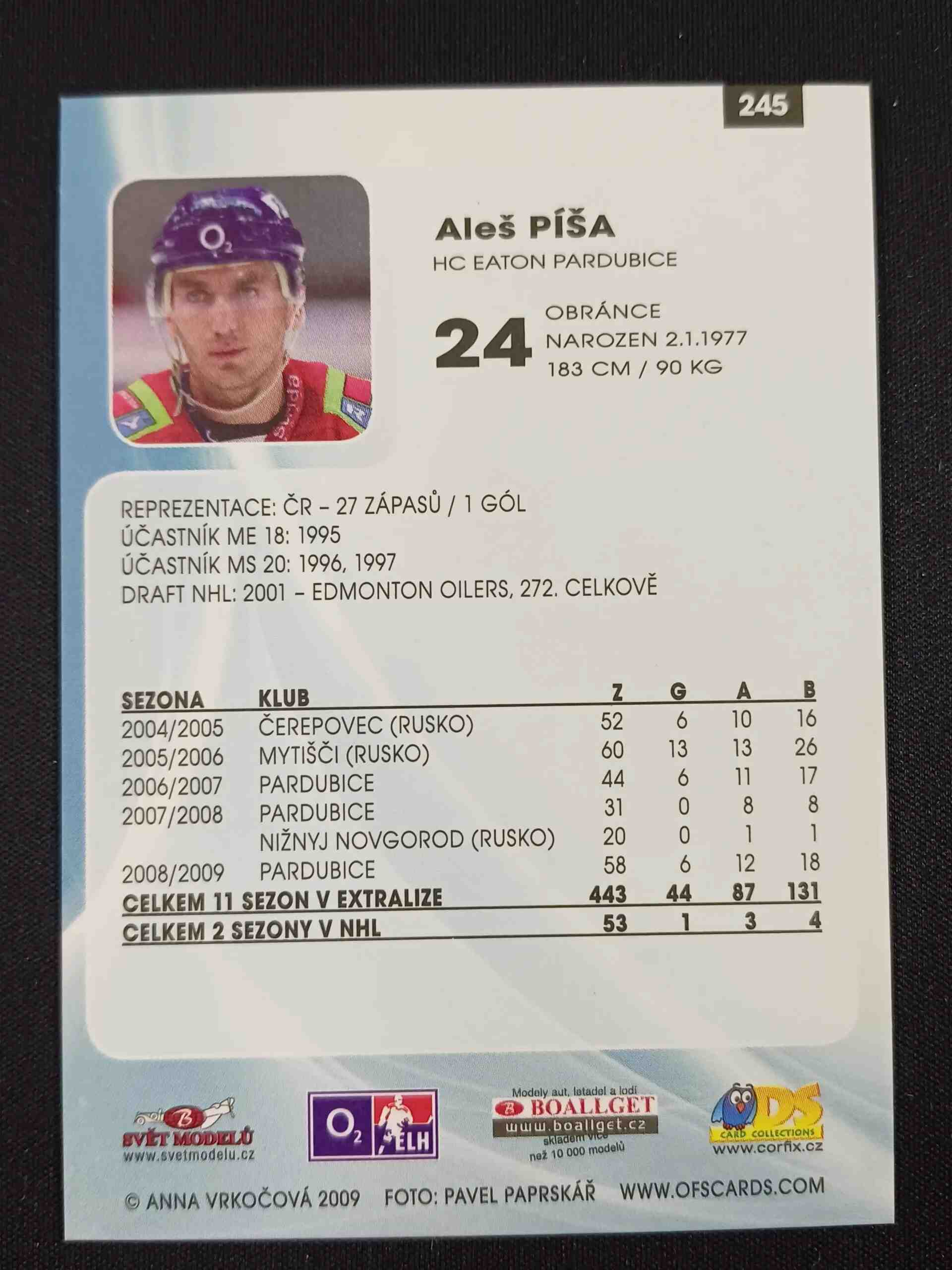 Sběratelská karta 2009/2010 OFS Plus Base 24 Aleš Píša
