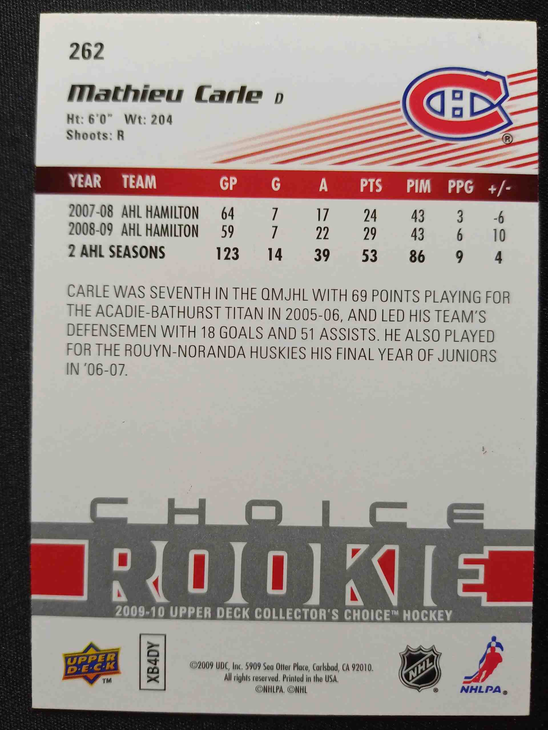 Sběratelská karta 2009/2010 Upper Deck Collectors Choice Choice Reserve 262 Mathieu Carle Paralel