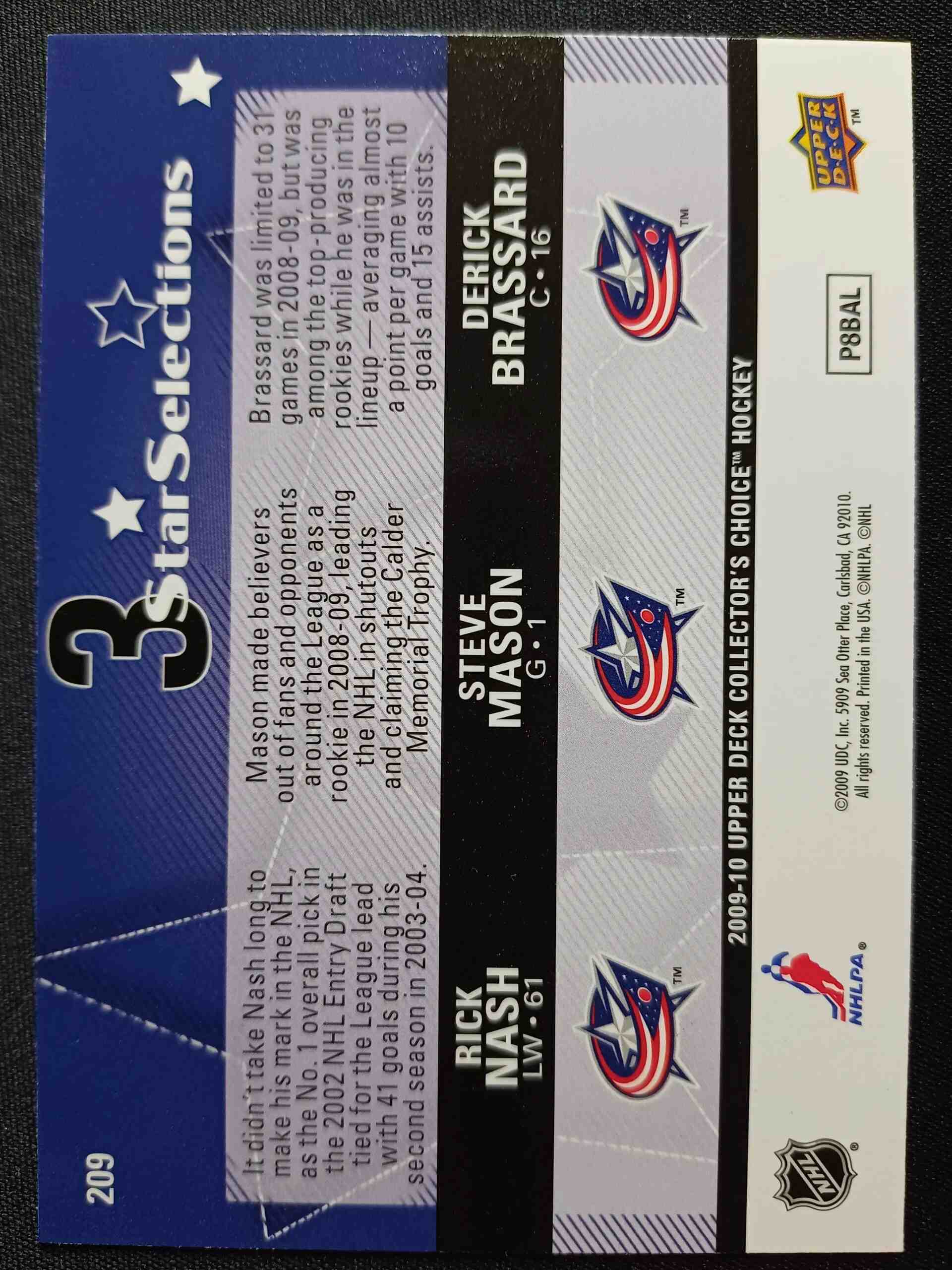2009/2010 Upper Deck Collectors Choice Three Star Selection Choice Reserve 209 Rick Nash, Steve Mason, Derick Brassard Paralel