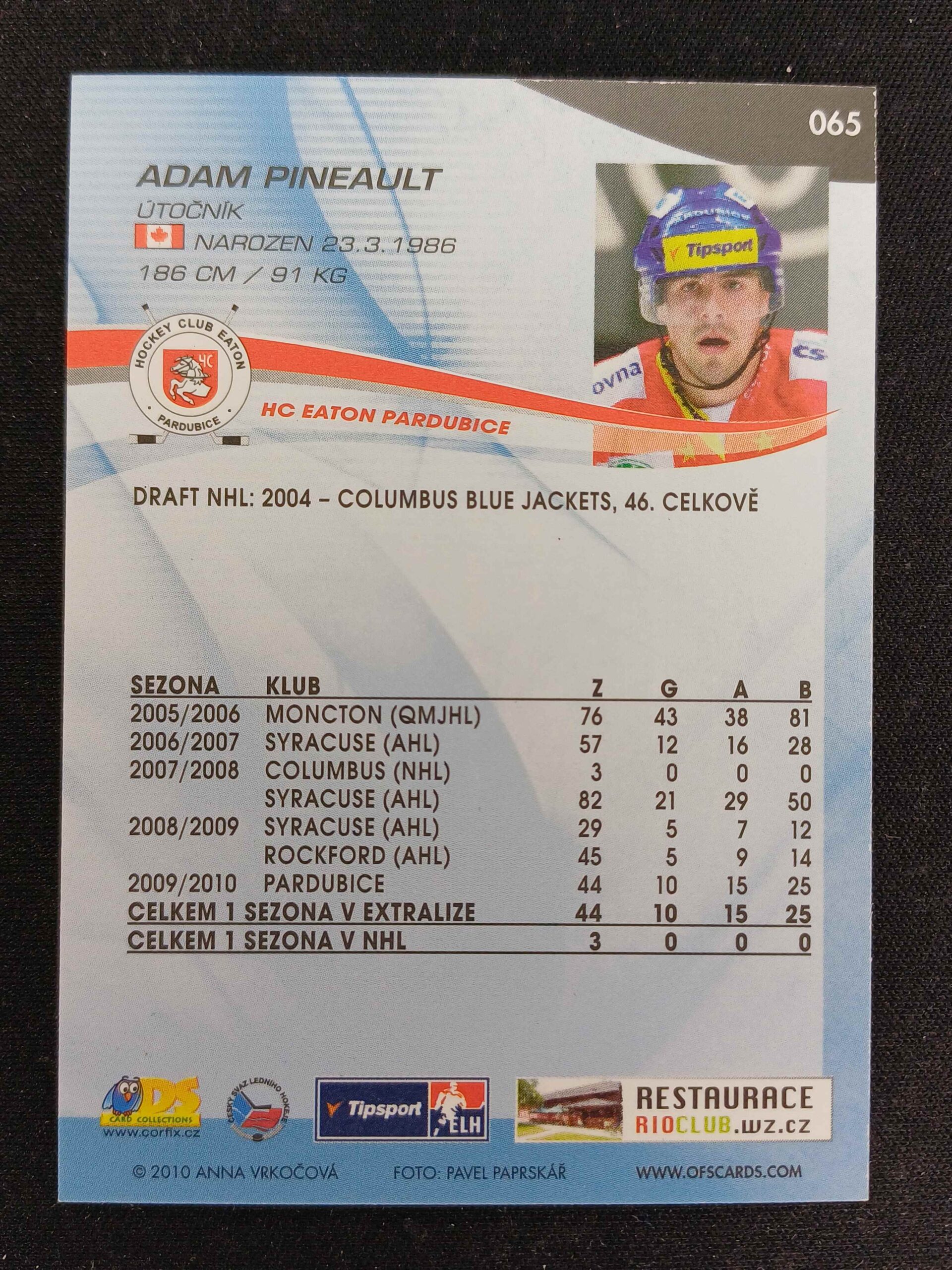 Sběratelská karta 2010/2011 OFS Plus Base 65 Adam Pineault