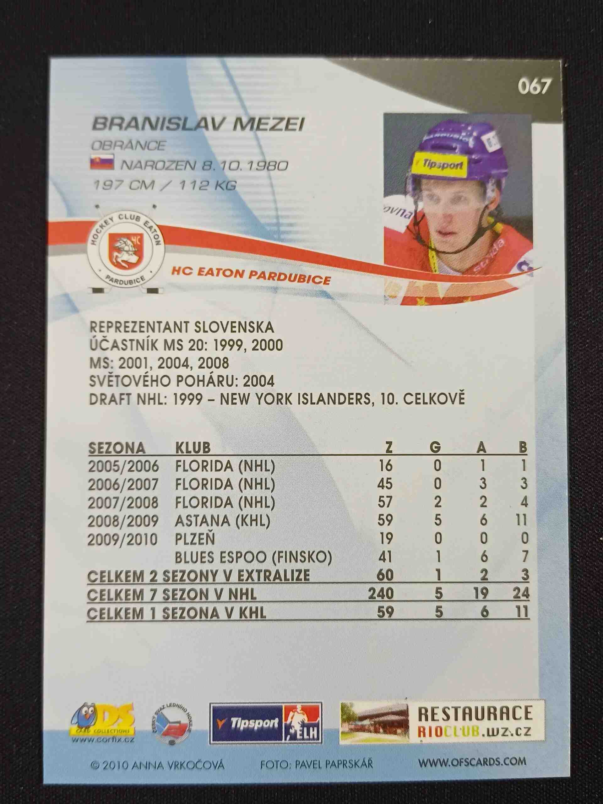 Sběratelská karta 2010/2011 OFS Plus Base 67 Branislav Mezei