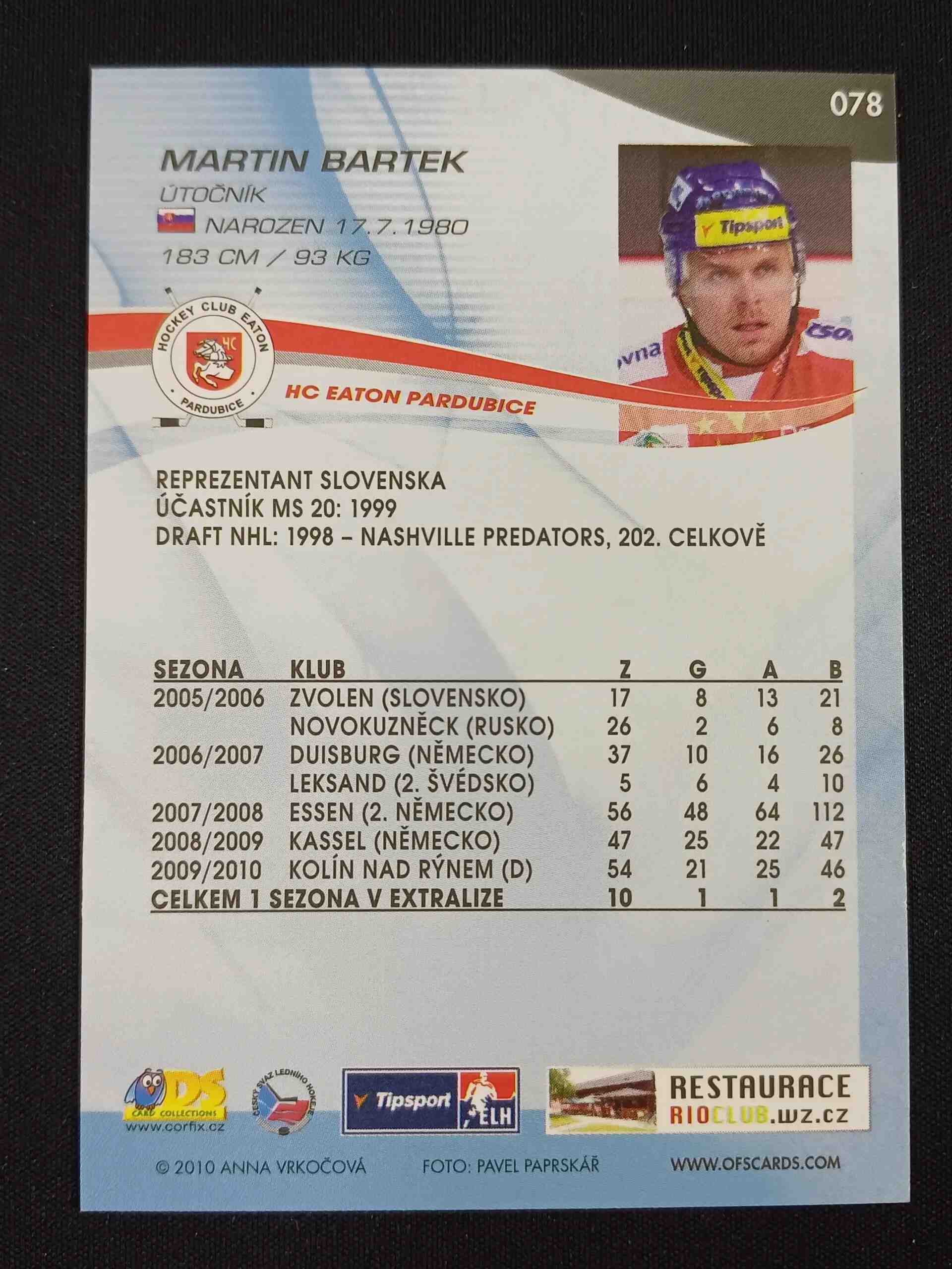 Sběratelská karta 2010/2011 OFS Plus Base 78 Martin Bartek