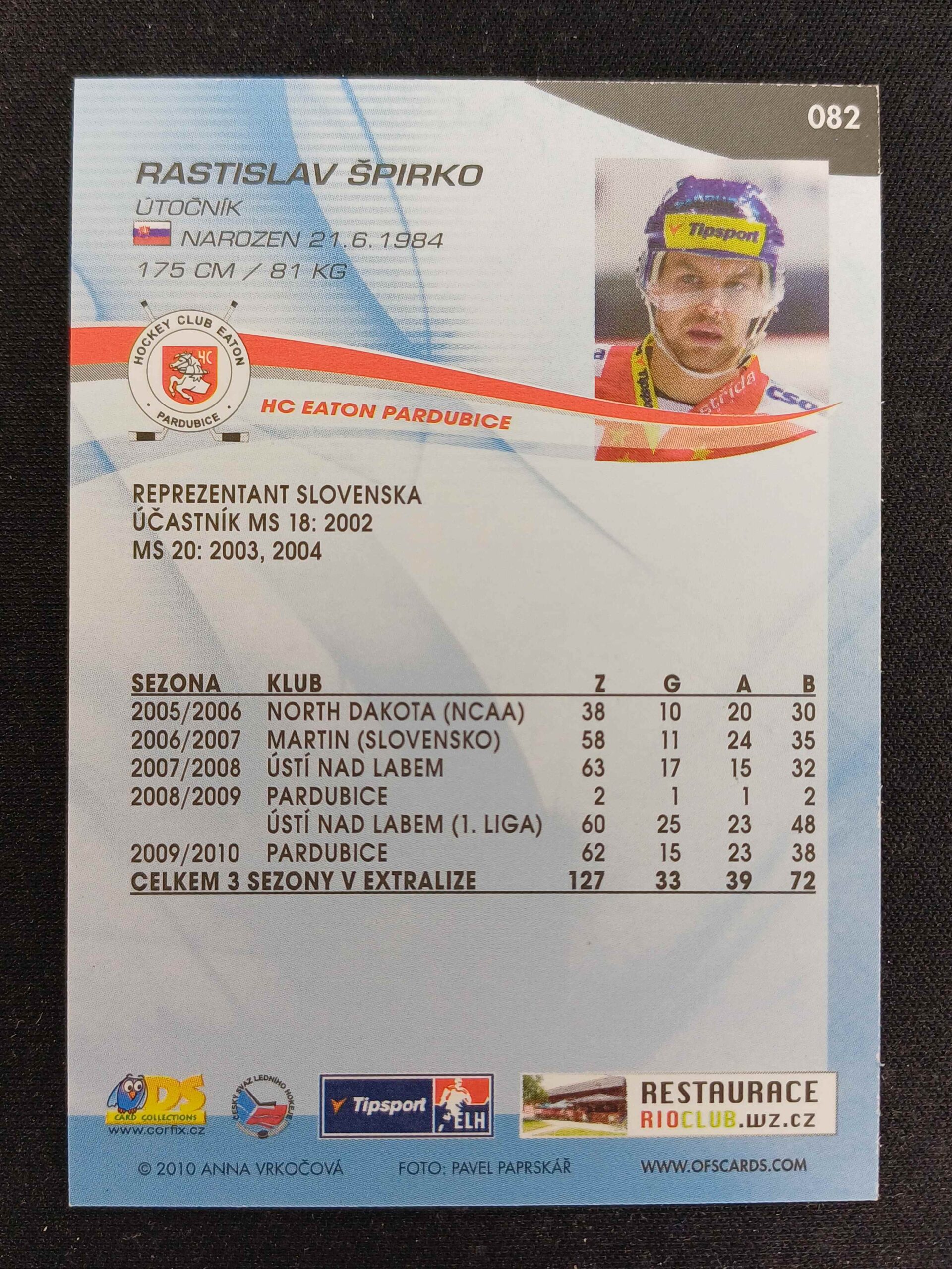 Sběratelská karta 2010/2011 OFS Plus Base 82 Rastislav Špirko