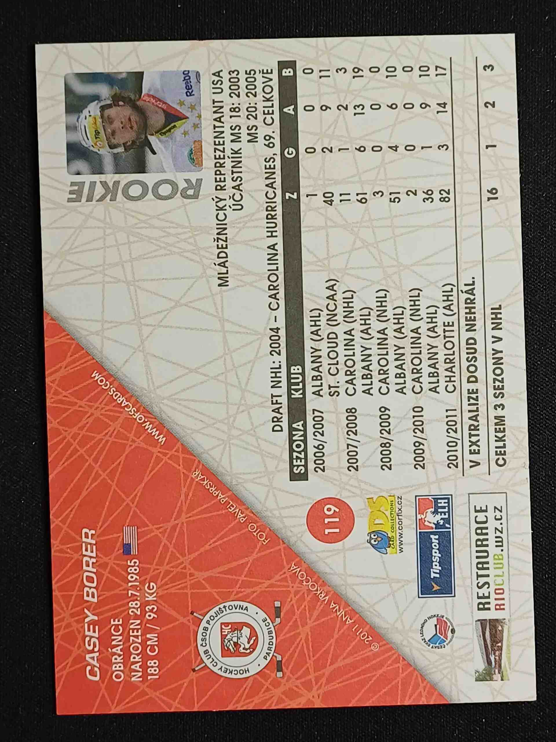 Sběratelská karta 2011/2012 OFS Plus Base 119 Casey Borer