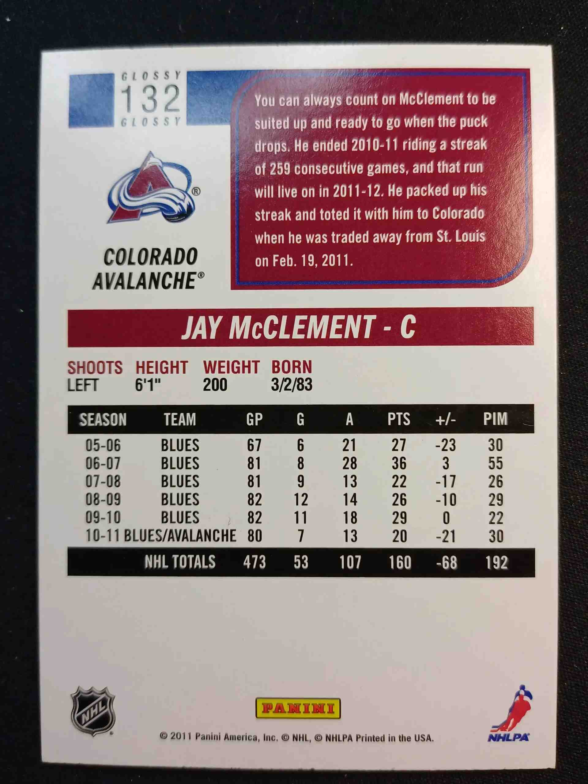 Sběratelská karta 2011/2012 Panini Score Glossy 132 Jay McClement Paralel