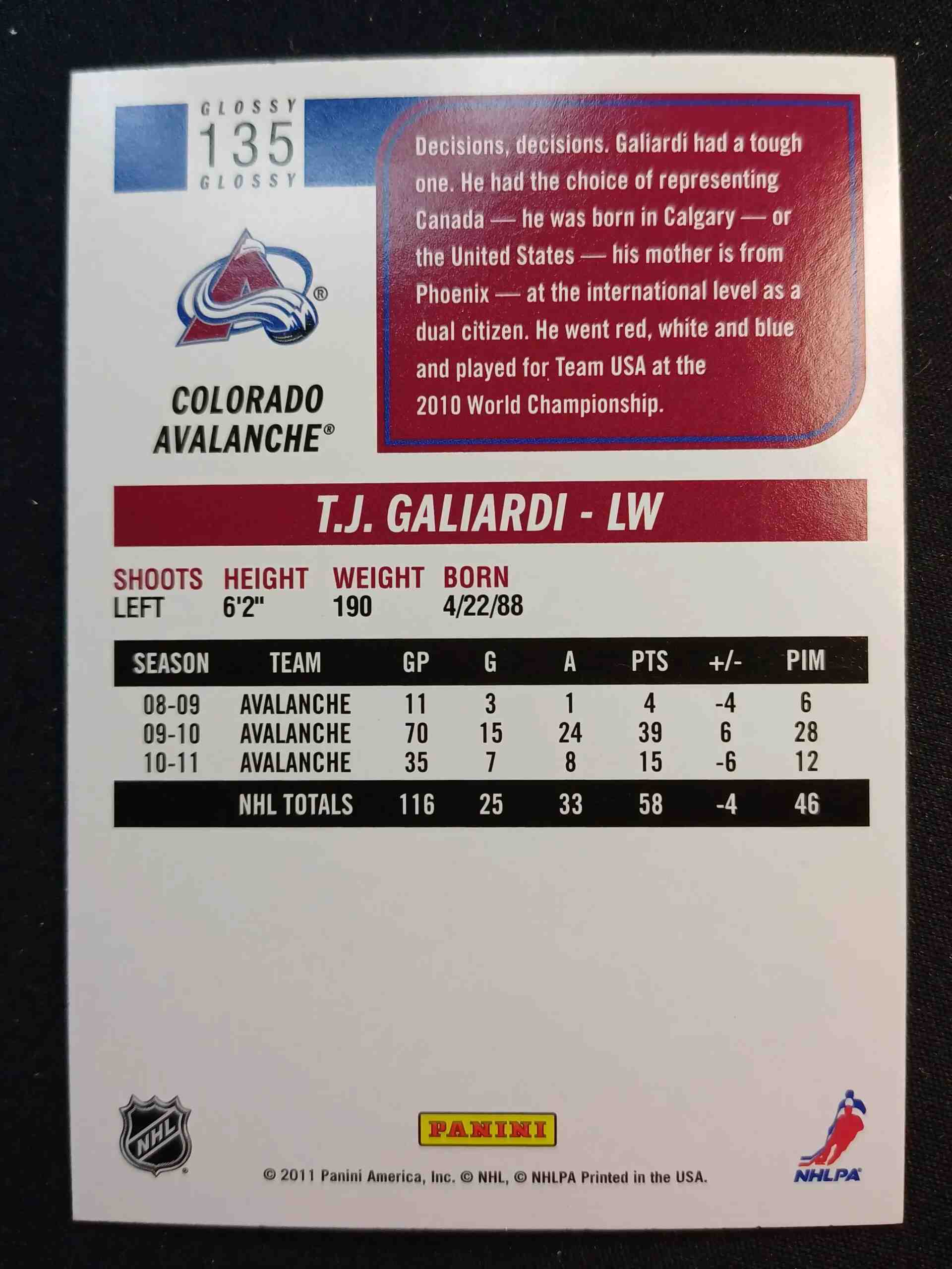 Sběratelská karta 2011/2012 Panini Score Glossy 135 T.J. Galiardi Paralel