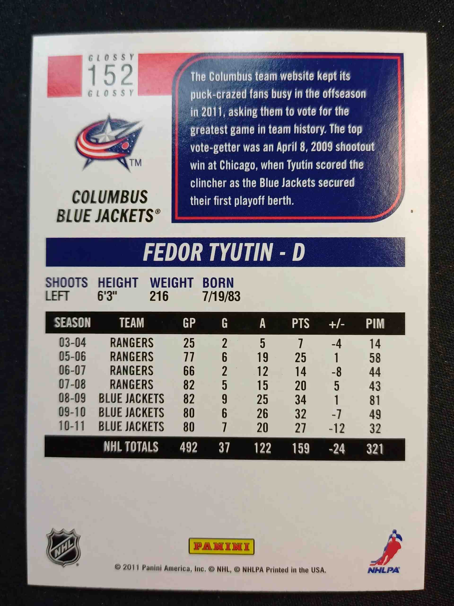 Sběratelská karta 2011/2012 Panini Score Glossy 152 Fedor Tyutin Paralel